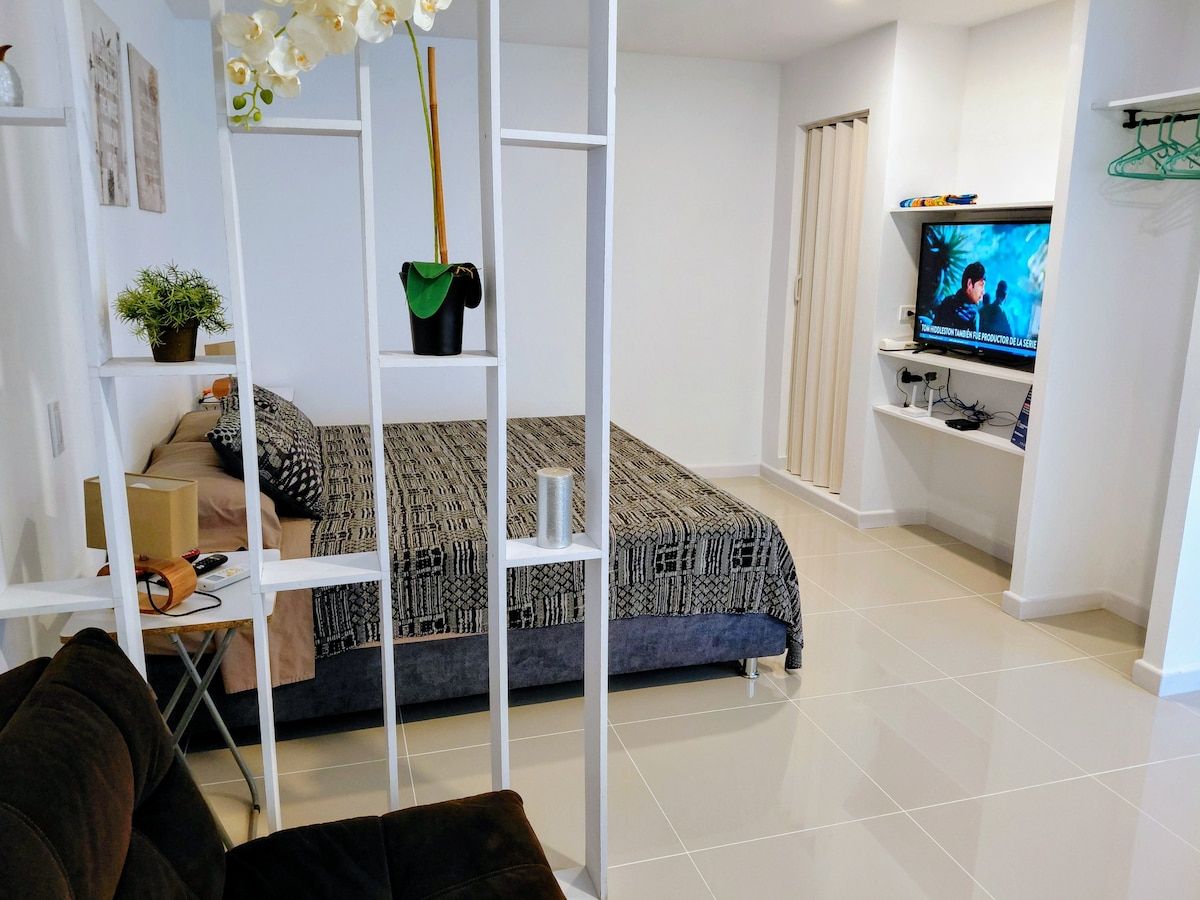 Private studio apartment, independent entrance, bathroom and kitchenette, comfortable, bright, overlooking the sea, surrounded by nature, located between two beaches that will be part of your trip. A 5 min walk from tourism services, dive stores and supermarket.