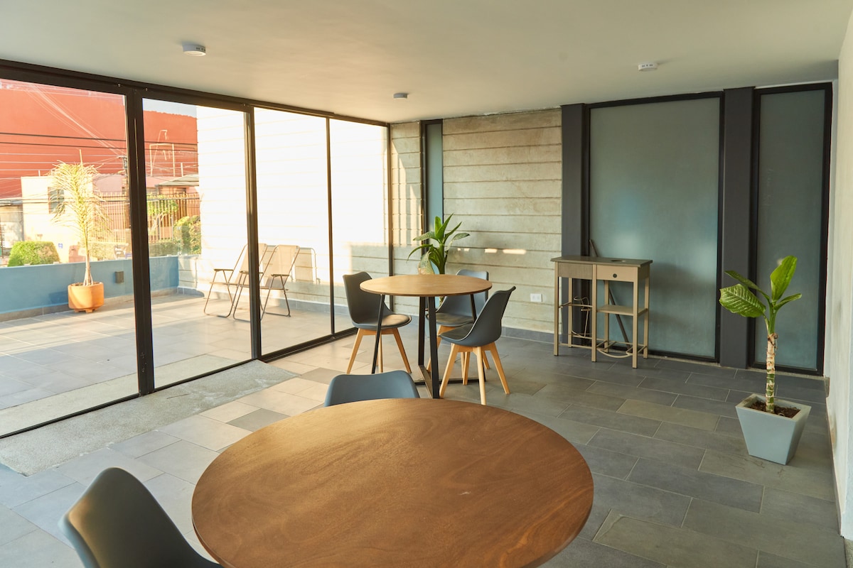 Encantador departamento estilo Vintage en hermosa zona de Cholula muy cerca del centro y del Cerro Zapotecas, 90 m2 mas terraza privada, Cuenta con sala, comedor, cocina integral abierta a la zona social, cuarto de lavado equipado con lava-secadora, baño y una amplia recamara con vestidor amueblada con smart TV, escritorio de trabajo, sillón de descanso y cama King Size. El condominio cuenta con bicicletas que podrás tomar y disfrutar un encantador paseo por los alrededores. Facebook @deck105