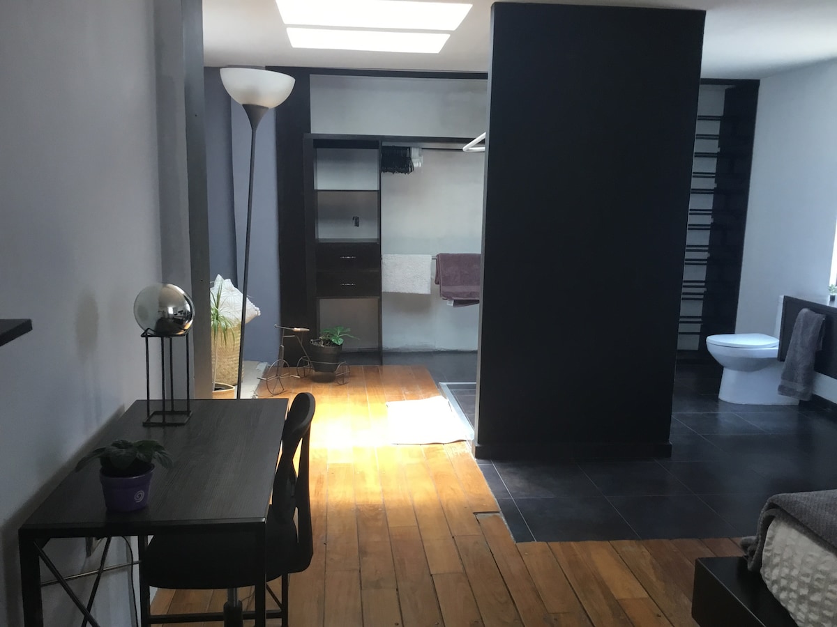 Brand new Loft Azul, located inside a gated community with tennis court and golf course. Decorated in tones of blue and industrial details, has a king size bed, living room with a queen sofa bed, bar, bathroom, fully equipped kitchen, 100 mega wifi, cable TV. It has an independent entry and a private garden. The loft is located steps from the Cerro Zapotecas, Pueblas´natural reserve and only ten minutes from downtown Cholula and the pyramid.