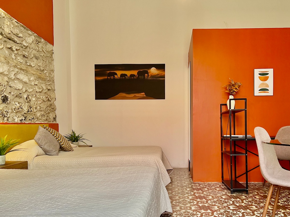 Our beautiful small loft is located in the heart of a beautiful city, our bulding has an ecological concept, so you will be using the solar energy for electricity and heating water, as well as other features. We have a restaurant in ground floor, don´t worry is completly easy going, and you will be able to reach us any time. :) You will have everything you need to rest, and charge energies to visit this beautiful city. We are located just half a block from the arqueological zone and piramid.