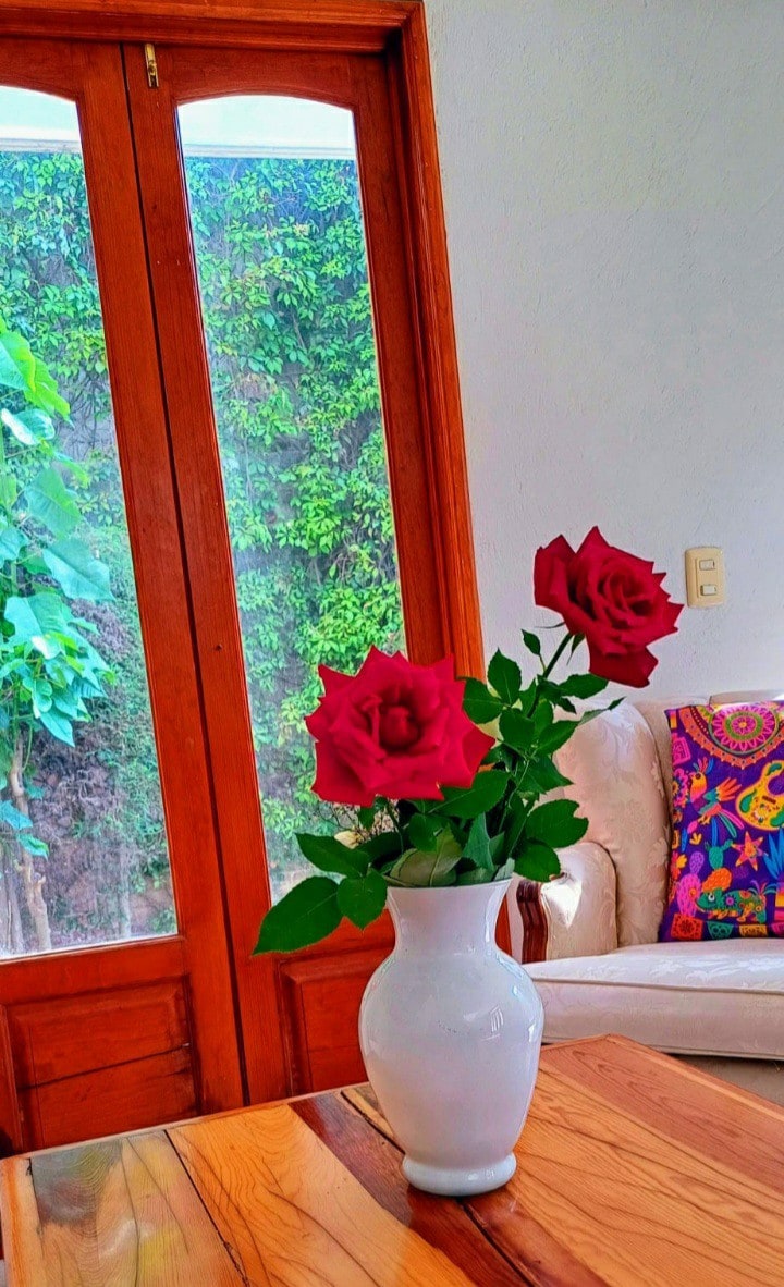 Beautiful house in a residential area with a country atmosphere. Very spacious, illuminated and in total privacy. Located very close to Cerro Zapotecas, a beautiful place ideal for practicing mountain biking and walking with pets. It has a beautiful garden with fruit trees, a grill oven, two garden furniture, sun umbrellas, as well as two terraces, one of them panoramic with a beautiful view of the Popo. Driveway for 5 cars 100% PET FRIENDLY 5 min. by car from the center