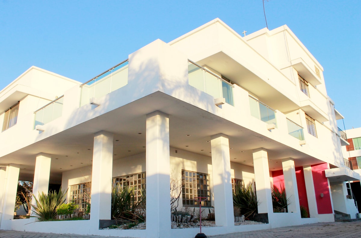 Desde este alojamiento céntrico todo el grupo podrá tener fácil acceso a todo.transportes para ir a toda la ciudad a dos cuadras, una colonia privada dónde no se escucha ningún ruido, pueden salir a caminar sin peligro, la recamara es fresca