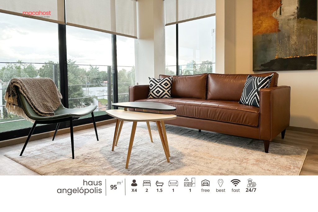 Disfruta de una estancia tranquila y céntrica en el departamento DaVinci - Angelópolis. Ubicado a minutos de los centros comerciales Solesta y Angelópolis, Auditorio Metropolitano de Puebla, la Estrella de Puebla y Walmart tendrás acceso a lo mejor en compras, gastronomía y entretenimiento. Situado en un fraccionamiento cerrado con vigilancia 24/7 y estacionamiento dentro del complejo. Ideal para descansar y estar cerca de todo.