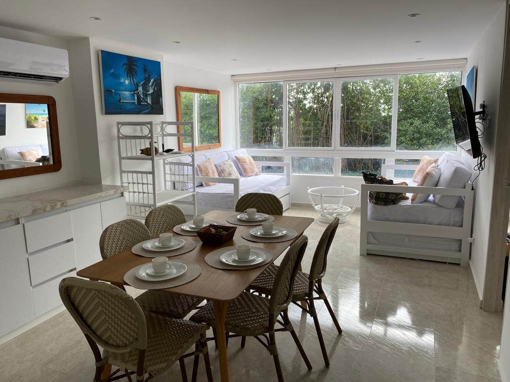 🌊EXCLUSIVO APARTAMENTO FRENTE AL MAR 🏝️ Disfruta San Andrés en un moderno y acogedor apartamento a solo 2 minutos caminando de la playa. Relájate en el balcón privado con vista a Johnny Cay. Edificio nuevo en Sarie Bay con recepción 24h, ascensor, y espectacular terraza con jacuzzi y vista al mar. Ideal para familias o grupos que buscan confort, ubicación y paisajes únicos. El 1% de las ganancias mensuales del alojamiento serán donadas a una fundación de animales en la isla.🐕