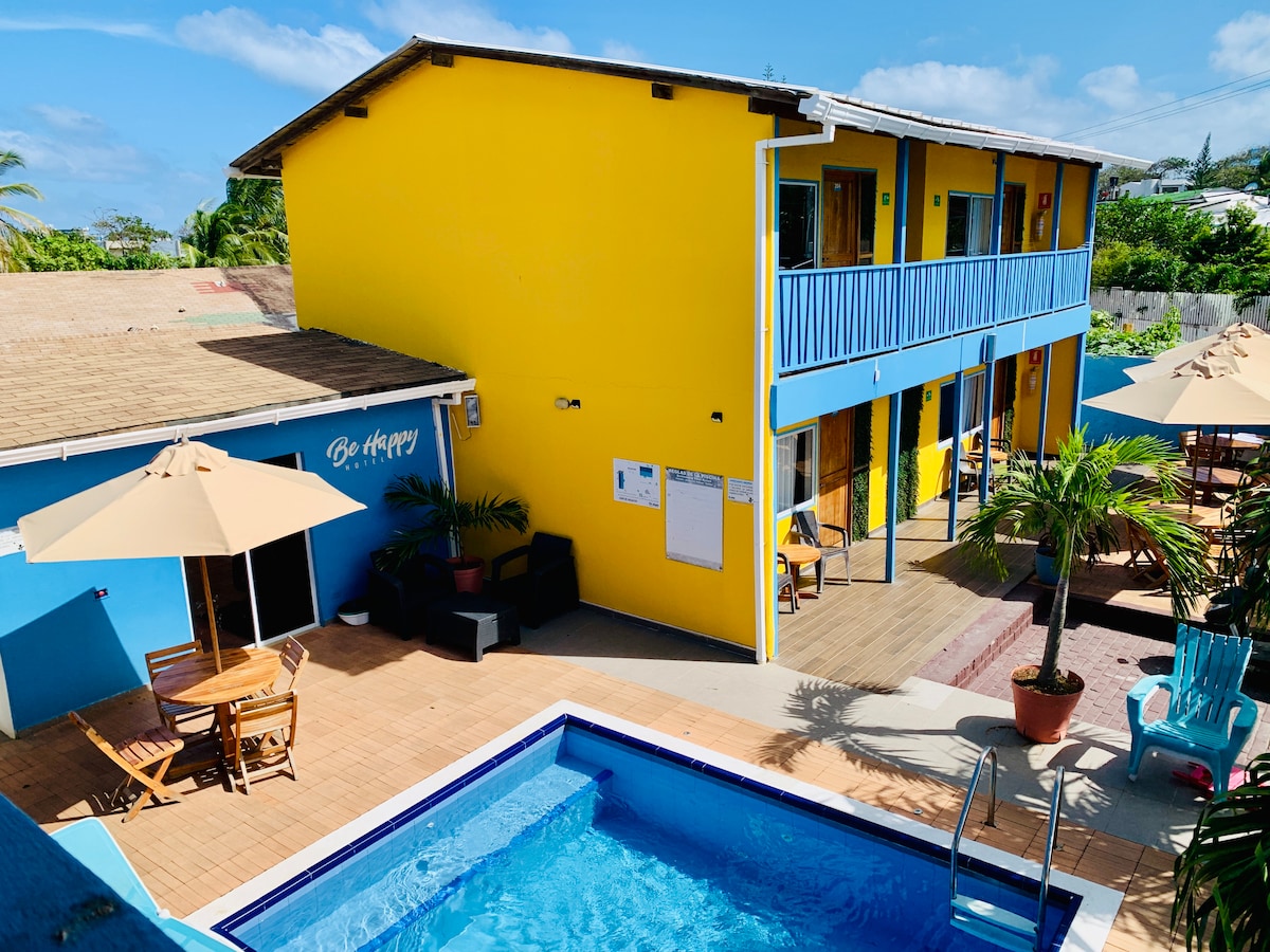 ¡Bienvenido a nuestro tranquilo paraíso en San Andrés Islas! Sumérgete en la serenidad de nuestras instalaciones de estilo isleño, donde los tonos de rosa, azul y amarillo te envolverán en un aura de alegría y calidez. Nuestra piscina cristalina te invita a refrescarte bajo el sol tropical garantizando, con un ambiente tranquilo y acogedor. Descubre la magia de isla desde la comodidad de nuestro hotel, donde cada momento se convierte en una experiencia inolvidable para ti y tus seres queridos.