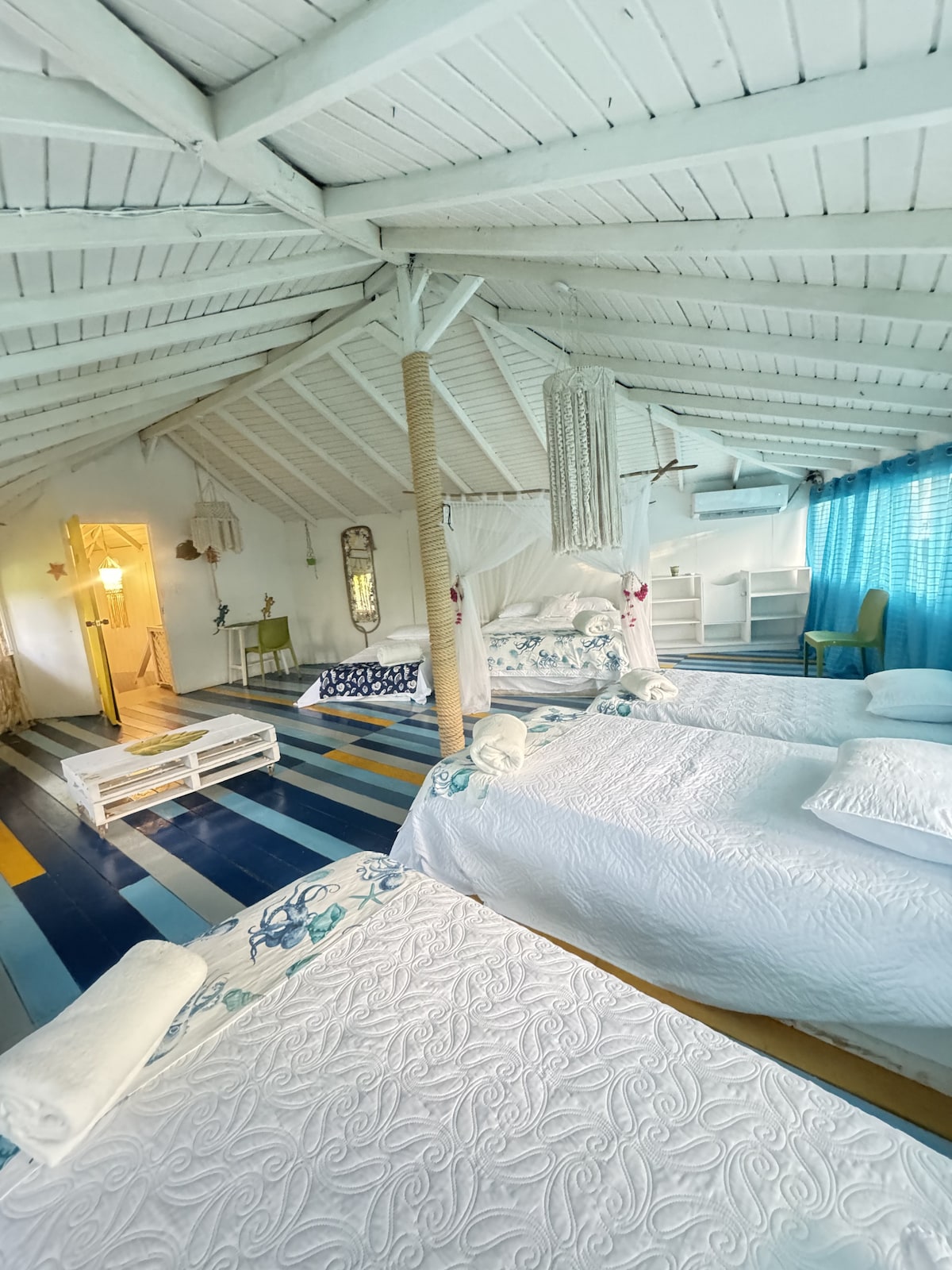 Descubre la tranquilidad del Caribe en Mykonos Beach Sai, un alojamiento diseñado para quienes buscan descanso, comodidad y cercanía al mar en uno de los destinos más hermosos de Colombia. Ubicado a pocos minutos del aeropuerto y a pasos de la playa, nuestro espacio combina un estilo moderno con esencia isleña, creando el ambiente perfecto para desconectarte y disfrutar del paraíso.
