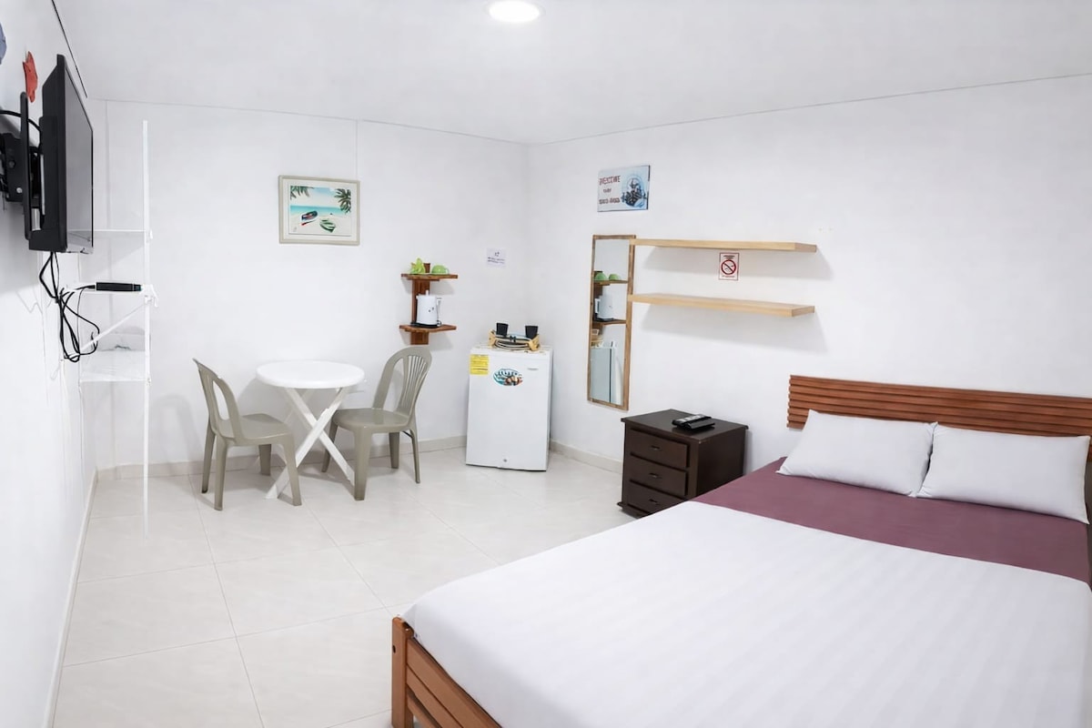 Apartaestudio un ambiente sin divisiones ideal para familias o amigos ubicado en el mejor sector residencial de la isla barrio sariebay cerca a aeropuerto y playa del centro y peatonal .1 kilómetro del centro y 12 minutos a pie de la playa principal . Limpio ,económico y acogedor. El apartaestudio cuenta con un solo ambiente con aire acondicionado, baño interno , Cocina privada interna, nevera y tv canales nacionales .