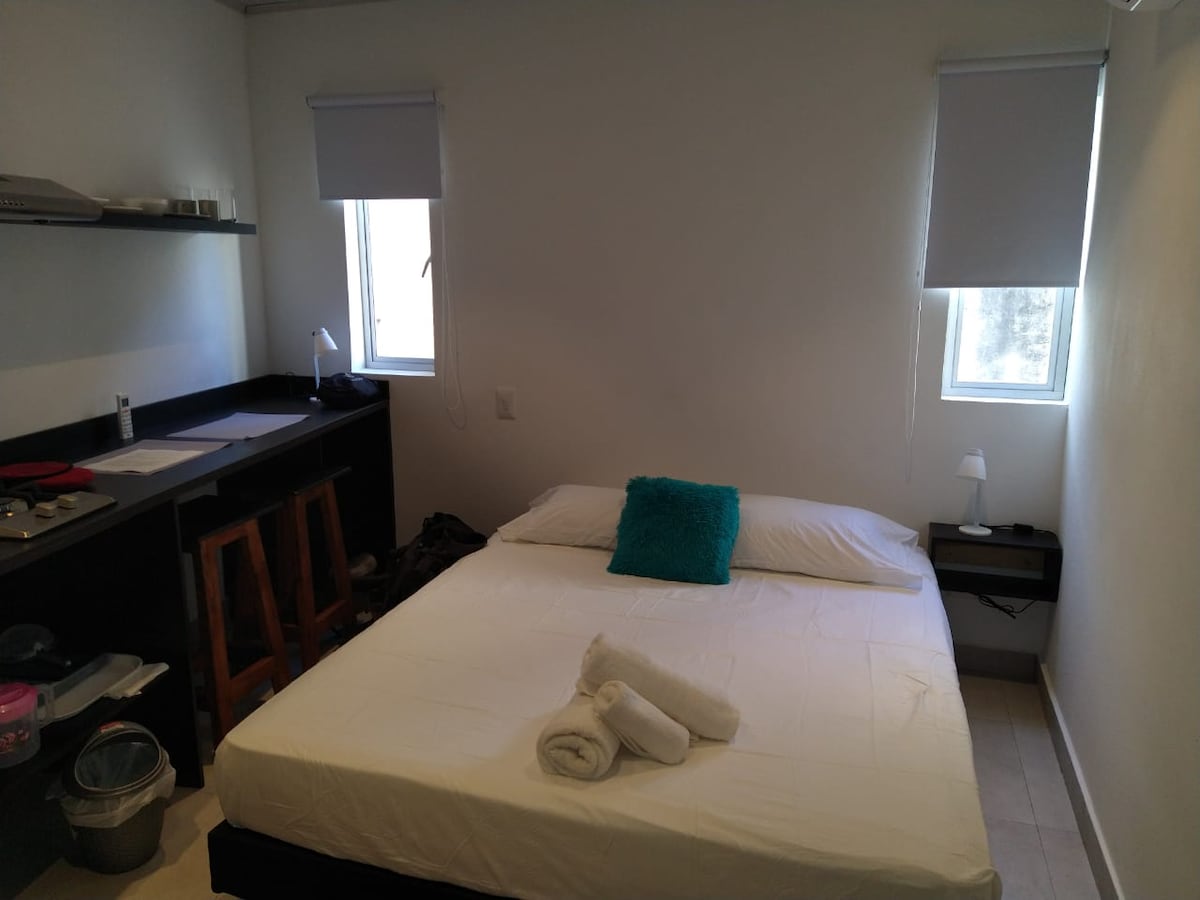 Beautiful apartment. Two double beds, bed sheets, closet, Tv, and air conditioner. one of the BR w/full size mirror. Full bathroom with towels, soap and toilet paper. NO hot water .oneFull kitchen with utensils, and a 4 seat dining table. The whole group will enjoy easy access to everything from this centrally located place. We are not a hotel, so we need the Flight information before arrival