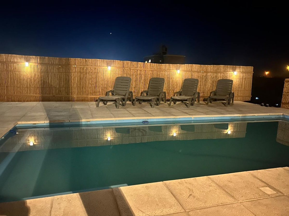 This peaceful off-grid apartment is surrounded by nature located just 500m from Playa Los Coloradas and a few minute drive from Las Grutas town center. The perfect place to get away. Equipped with plenty places to relax: the balcony, rooftop terrace with a beautiful view, or you can cool off by the pool. Theres trail that goes out to the beach in-front only a 4 minute walk away. The night sky is absolutely breathtaking.