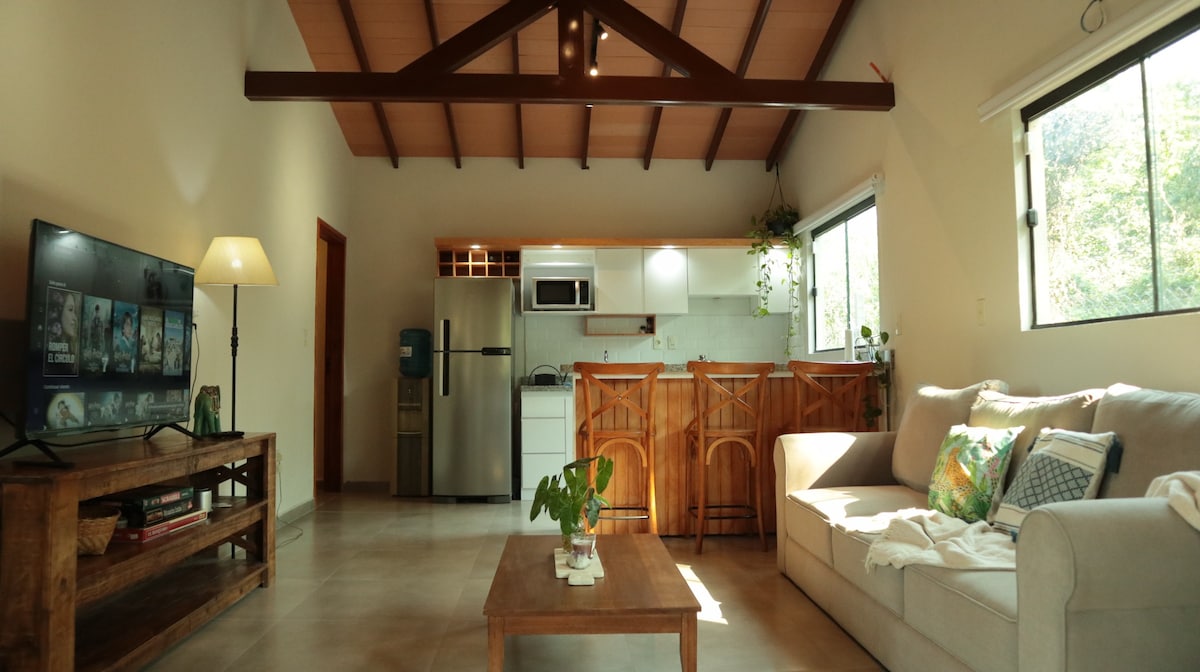 YPA KA’A is a unique house surrounded by forest, just 100 m from the lake. Every piece of furniture and detail was carefully chosen, combining contemporary design, warmth, and functionality Equipped for remote work, it offers an inspiring and peaceful setting, perfect for those seeking rest, connection with nature, and style in one place. The house is designed mainly for a couple, but it can accommodate up to 3 guests or 2 couples, keeping in mind that space will be more limited in that case.