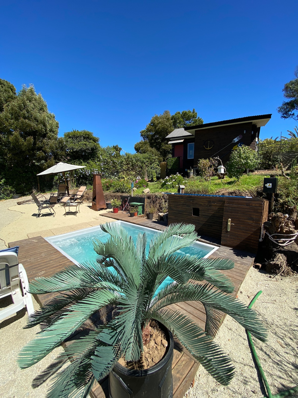 Casa completa a pocos minutos de la playa Las Brisas de Navidad y Matanzas. Entorno tranquilo, privado y con espectacular vista al mar. Casa sustentable para hasta 4 personas, con 2 habitaciones. 1 matrimonial y 1 cama nido. Ideal para escapadas en pareja o familia chica. La energía proviene de paneles solares y el agua de pozo. Totalmente equipada para cocinar, con utensilios y cubiertos. Incluye hot tub con leña para dos días (leña adicional $6.000 por 12 astillas)
