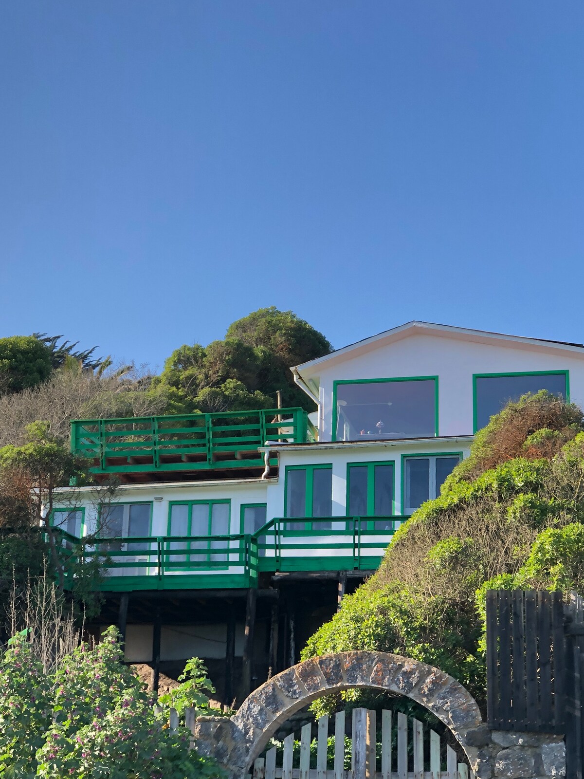 Prepárate para unos días con la mejor vista al mar, un sueño reponedor y para vivir momentos inolvidables. Nuestra casa está en primera línea de playa, con quincho y terraza frente al mar y una chimenea para los días fríos. Ubicada en un sector tranquilo y apartado, a pie de Supermercados y Restaurantes. Full equipada y muy cómoda, con todo lo necesario para tu estadía. Para acceder a la casa hay que subir una escalera desde el estacionamiento, no apta para personas con movilidad reducida