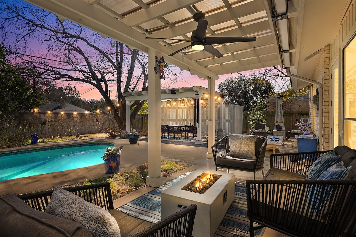Experience resort-style living at this stunning 3-bedroom, 2.5-bath San Antonio retreat featuring a Keith Zars luxury pool that promises relaxation and elegance at every turn. Perfectly blending comfort and style, this home offers a peaceful escape just minutes from the city’s best attractions. Spend your days lounging by the sparkling pool, or enjoying a barbecue on the covered patio surrounded by lush landscaping and privacy. Inside, the spacious open floor plan invites you to unwind in the cozy living area, prepare meals in the fully equipped kitchen, or catch up on work in the dedicated office space. The bedrooms are designed for rest and rejuvenation, with plush beds and thoughtfully appointed bathrooms to enhance your stay. Whether you’re here for business, a family getaway, or a relaxing weekend, this home provides the perfect balance of tranquility and convenience. After a day exploring the Alamo, the River Walk, or nearby McAllister Park, come home to your own private oasis — where the shimmering pool sets the scene for unforgettable Texas evenings. Permit number: STR-20-13500125