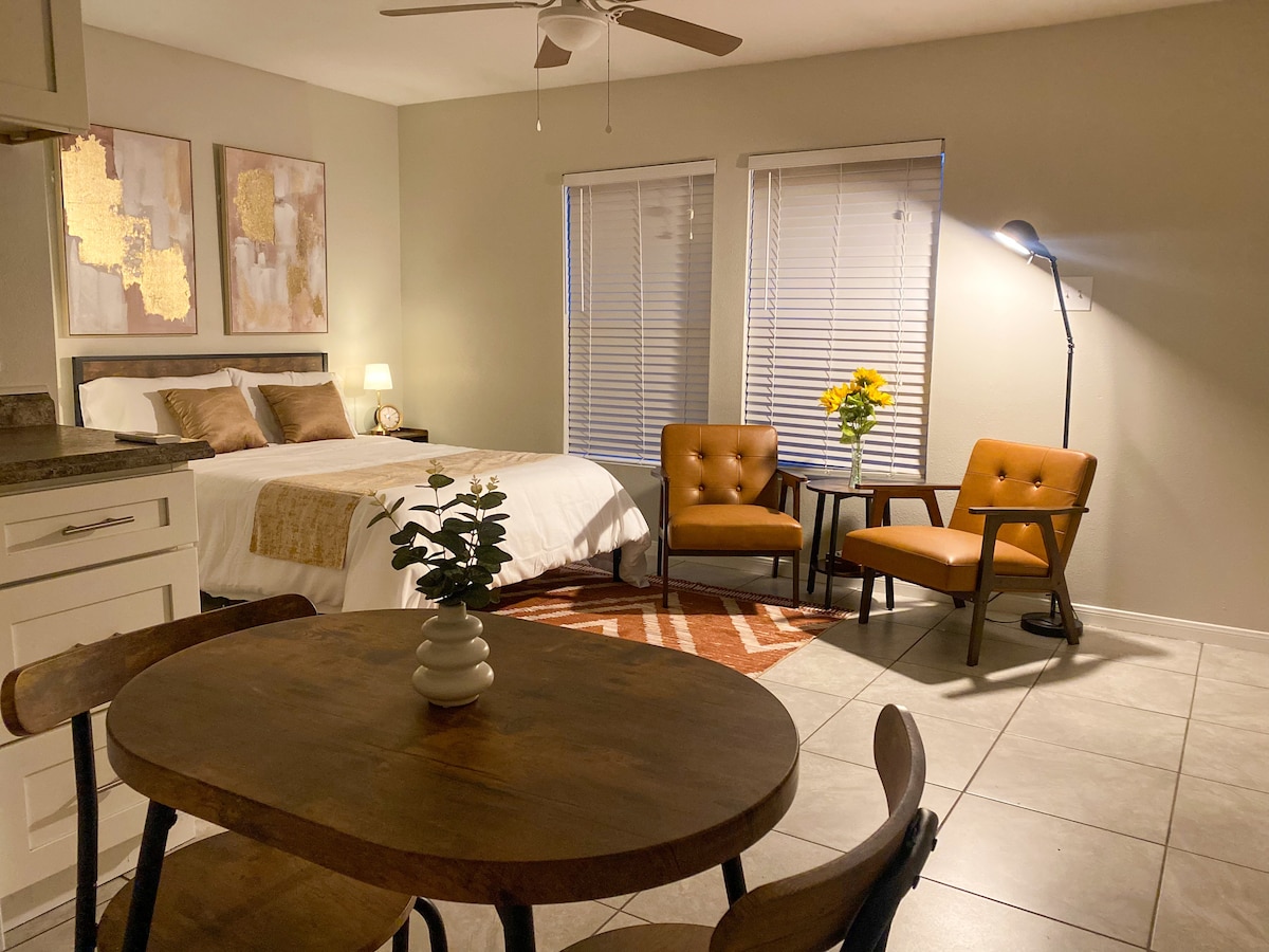 Minimalistic studio LESS THAN 1 MILE FROM THE ALAMO! Located in #HistoricDiggyHill, on the near east side of San Antonio, just outside of down town. Take an Uber or scooter into the city for less than $10. This guest suite has a kitchenette with all cooking essentials provided as well as a completely private entrance attached to the back of our forever home. Please note the neighborhood is totally safe, but is up-and-coming.