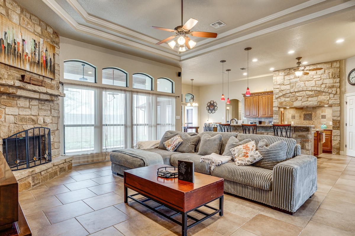 Covered Patio w/ Gas Grill | Fire Pit | 2 Mi to UT Health Medical Drive Your ticket to family fun awaits at this San Antonio vacation rental! Located just a short drive away from the famous River Walk and the historic Alamo, this 4-bed, 2-bath home provides the perfect blend of comfort and convenience. After visiting the San Antonio Zoo, relax by the Smart TV in the cozy living area, fire up the grill for a BBQ, or sip a cold drink under the shade by the fire table!