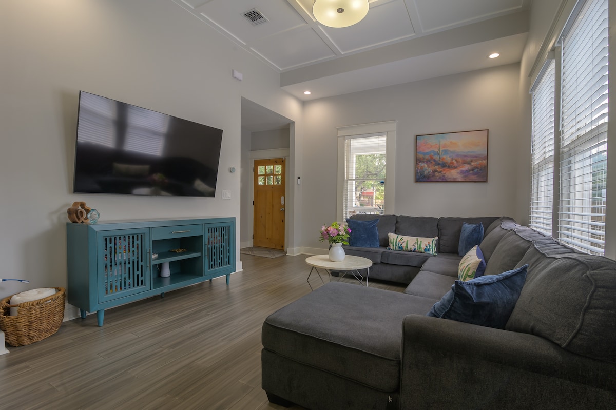 Visiting Trinity, Fort Sam, or just here to explore the Pearl? This 3-story modern home is the perfect stay — with a private garage (Tesla charger included), fast Wi-Fi, Xbox Game Pass, and a full kitchen for meals at home. Walk to top restaurants, bars, and downtown events. Each bedroom and the living room have their own A/C. Ideal for families, parents visiting college students, military guests, or foodies looking for a clean, secure space close to everything.