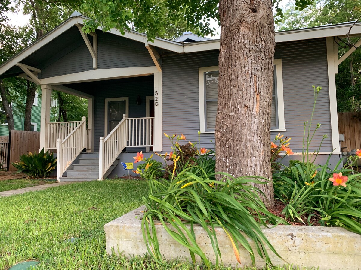 • Walk through a garden-like, fenced backyard and enjoy private keyless check-in. • Convenient access to The Pearl, RiverWalk, Medical Ctr, and Hill Country excursions. • Sleep late in your plush memory foam mattress, then enjoy your coffee on the patio or the fire pit. • Ideal for quality-minded guests, honeymooners, or anniversaries! • Small fridge + Keurig + Microwave + Fast Wi-FI. • • Superb A/C! Meticulous cleaning! • Enjoy our firepit ! Heart us a top right!
