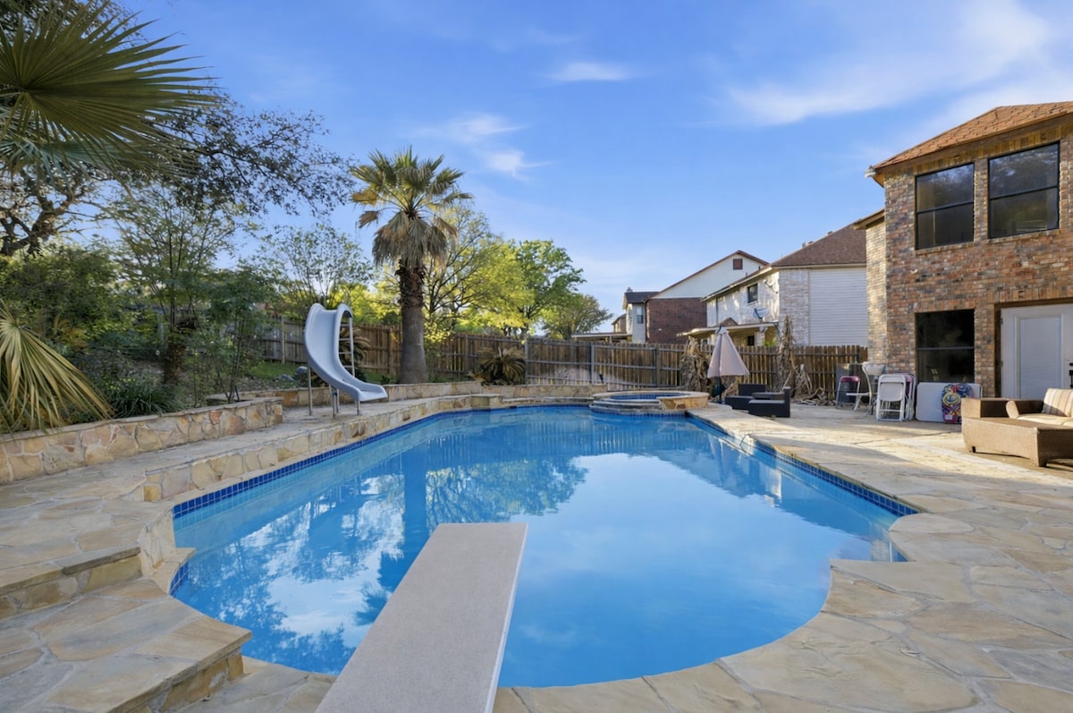 ⭐️ 5-Star Retreat | Close to Top Attractions & Entertainment | Karaoke, Game loft & more Enjoy deluxe comfort & no cleaning chores! Prime location near 6 Flags, the Shops @ La Cantera, RIM, SeaWorld, UTSA, Top Golf, Andretti, Lackland AFB, Pearl, Downtown. Perfect for families, friends, groups, business, BMT grads, Bachelorettes & events. Multiple living & game areas for relaxation & fun incl. ★ Chefs kitchen ★ Karaoke ★ 6 TVs ★ Billiards ★ Shuffle board ★ Arcades ★ Corn hole ★ Poker