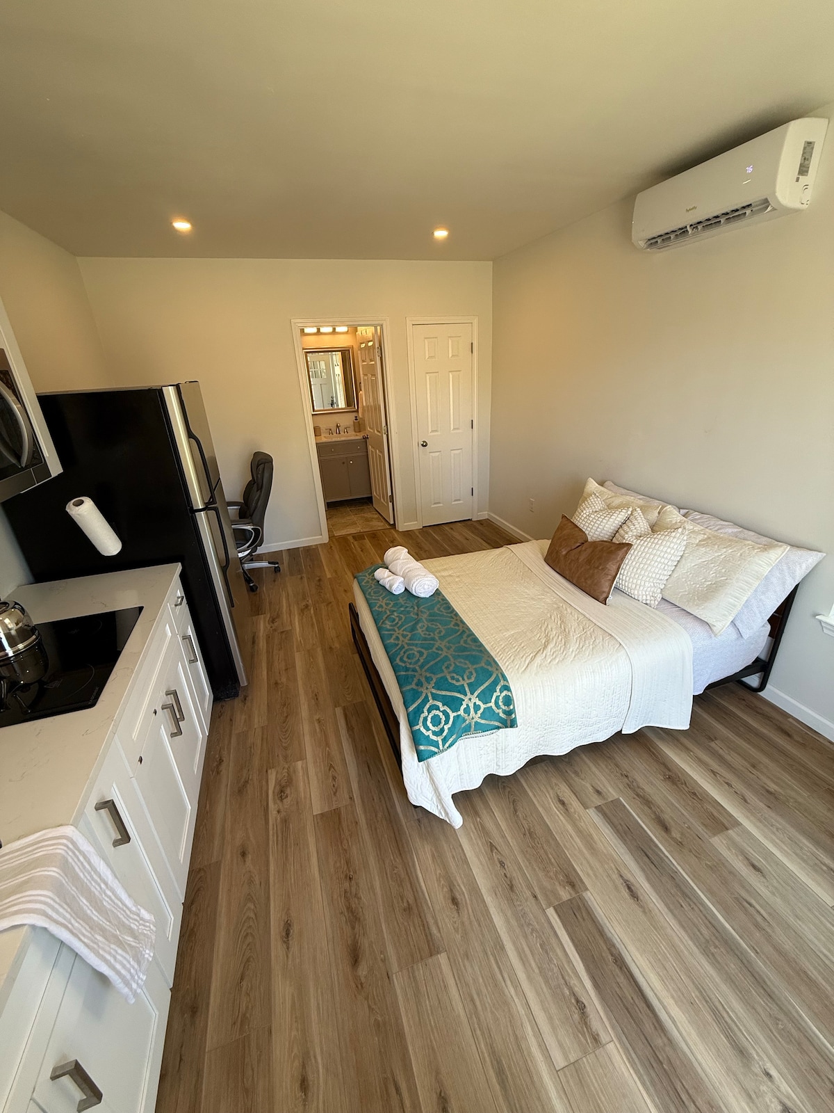 Discover the charm of this beautiful loft, boasting a modern design adorned with quality furniture. Enjoy a unique blend of privacy and seclusion, thanks to its exclusive connection to the main house—accessible only through a private exterior door. Perfectly sized for solo adventurers or cozy couples, this space comes equipped with a Smart TV (Netflix included), a mini-fridge and a microwave for your convenience. Plus, stay connected effortlessly with ultra-fast internet powered by Google Fiber.