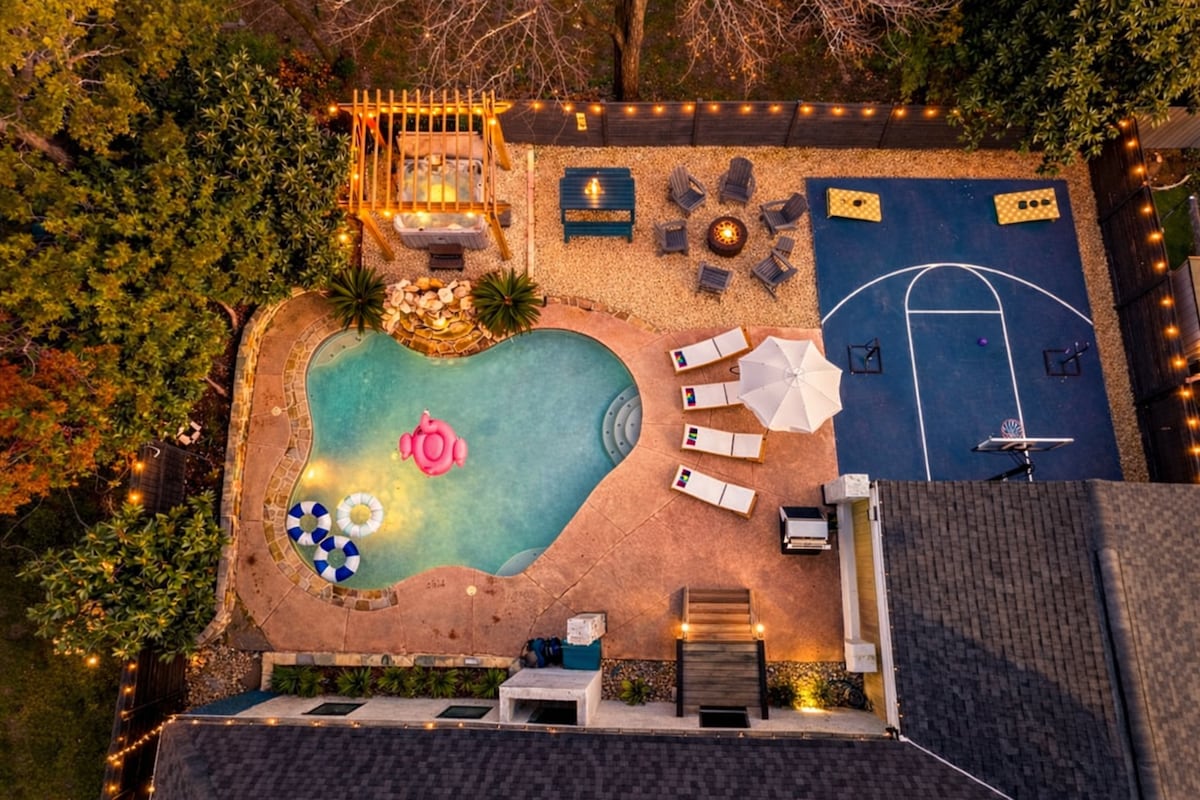 Lots of indoor and outdoor entertainment for the entire family! The theater room is great for movie night, karaoke and gaming! Our spacious home has a theater room with 120-inch projector screen, Xbox Series S, PlayStation 5, Karaoke and Dolby Atmos surround sound. Outside has a wood firepit & propane firepit, and a Heated in-ground pool! The pool is 20x10 and 5 ft deep. We provide plenty of seating to accommodate a large group. The Alamo 5mi, Riverwalk 4mi, Alamodome 6mi, Convention Ctr 5.5mi