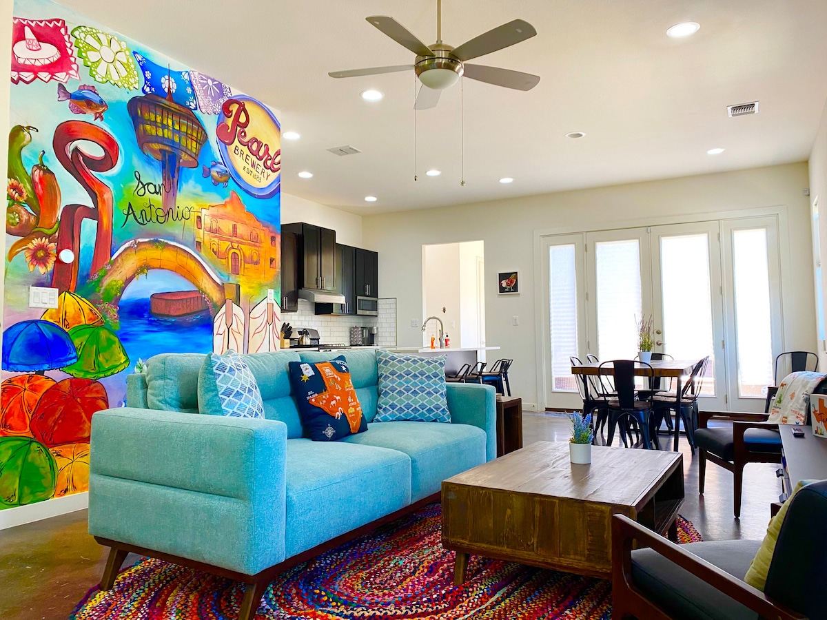 Stay in trendy Tobin Hill—just a 0.7-mile walk to the Historic Pearl’s shops, bars, restaurants, coffee spots, and farmers market. This locally themed 2bd/2.5ba home offers high-speed Wi-Fi, two smart TVs, an air-hockey table, board games, and a fully stocked kitchen. Central and family-friendly with quick access to the River Walk, Alamo, Zoo, SeaWorld, Botanical Garden, Fiesta, and more.