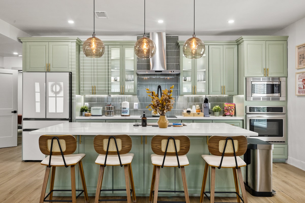 Indulge in the hidden retreat at our 5-bed, 3.5-bath, with office retreat by the scenic greenbelt. Watch deer from balconies, soak in the hot tub on a covered patio, and entertain effortlessly in our open floor plan. Modern kitchen, blackout curtains, and memory foam mattresses elevate your stay. Relax in the backyard oasis with Adirondack chairs around the fire pit. Only minutes from the South Texas Medical Center, our haven combines comfort and convenience for an unforgettable stay.