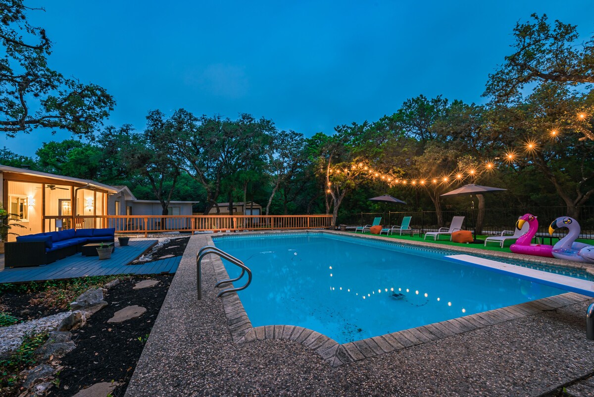 Lots of indoor and outdoor entertainment for the entire family! The theater room is great for movie night, karaoke and gaming! Our spacious home has a theater room with 120-inch projector screen, Xbox Series S, PlayStation 5, Karaoke and Dolby Atmos surround sound. Outside has a wood firepit & propane firepit, and a Heated in-ground pool! The pool is 20x10 and 5 ft deep. We provide plenty of seating to accommodate a large group. The Alamo 5mi, Riverwalk 4mi, Alamodome 6mi, Convention Ctr 5.5mi