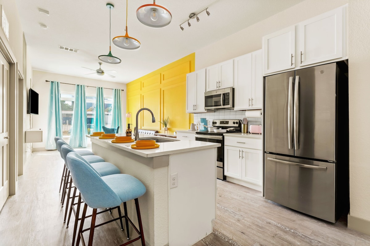 Step into resort-style living at this designer 2BR/2BA flat in San Antonio - Zenful Affirmations. Featuring gated access, a sparkling outdoor pool and modern gym, plus comfortable furniture, this apartment is ideal for long stays. Everything’s included — all utilities, fast Wi-Fi, kitchenware, cleaning supplies, full-size washer/dryer — so you can settle in with zero hassle. Pet-friendly, too! We Look Forward To Welcoming You To Zenful Affirmations!