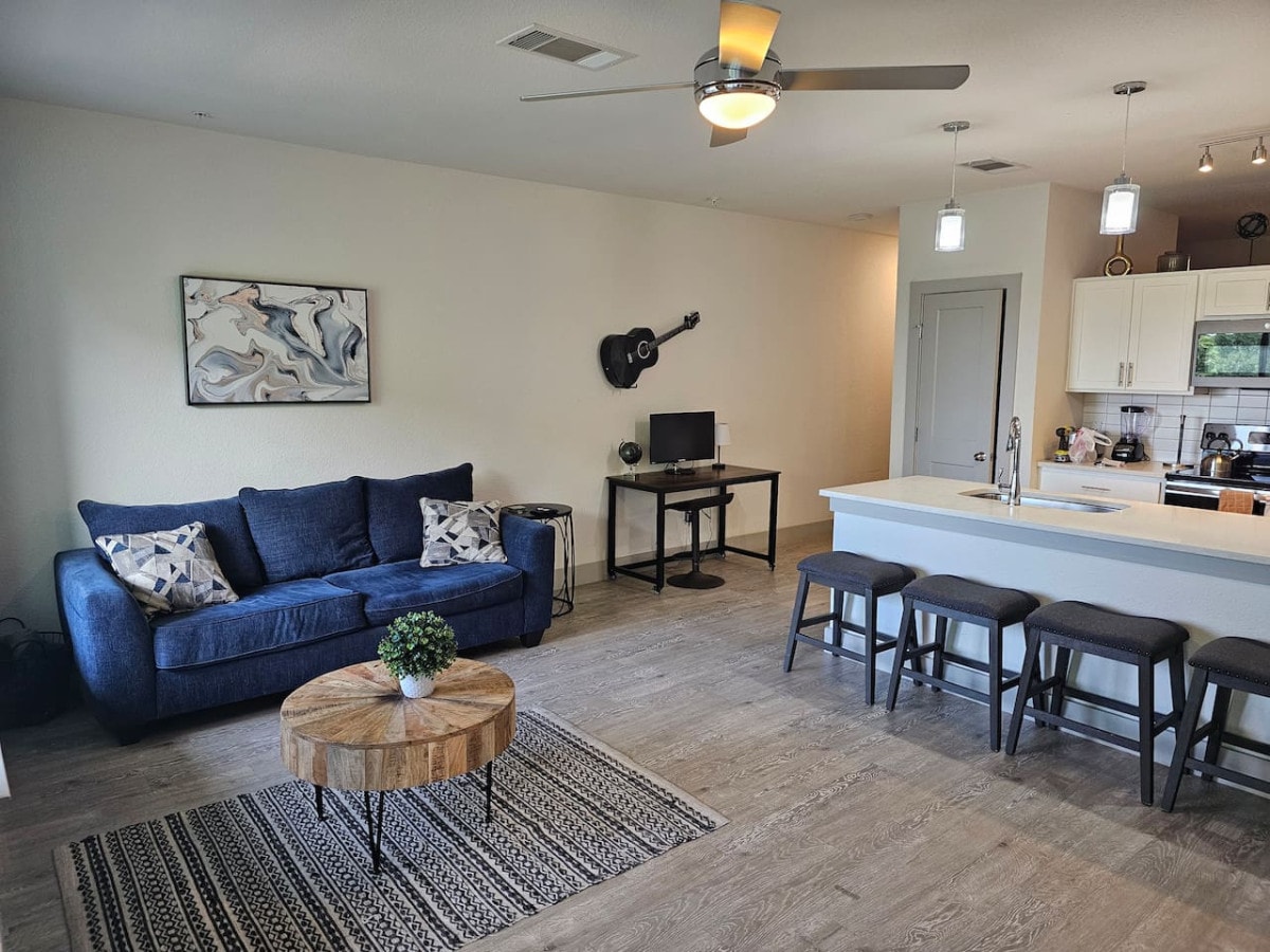 Experience style, luxury, and convenience at our beautiful centrally located Apartment with River Walk access. This community boasts high-end finishes in each unit, with unparalleled amenity spaces such as a gym and infinity pool overlooking the river. Located on the San Antonio River Walk, you will have access to the best shopping and dining along with quick access to museums, bars, and jogging trails. Our units are modern, urban, and stylish. So book today! You will not be disappointed.