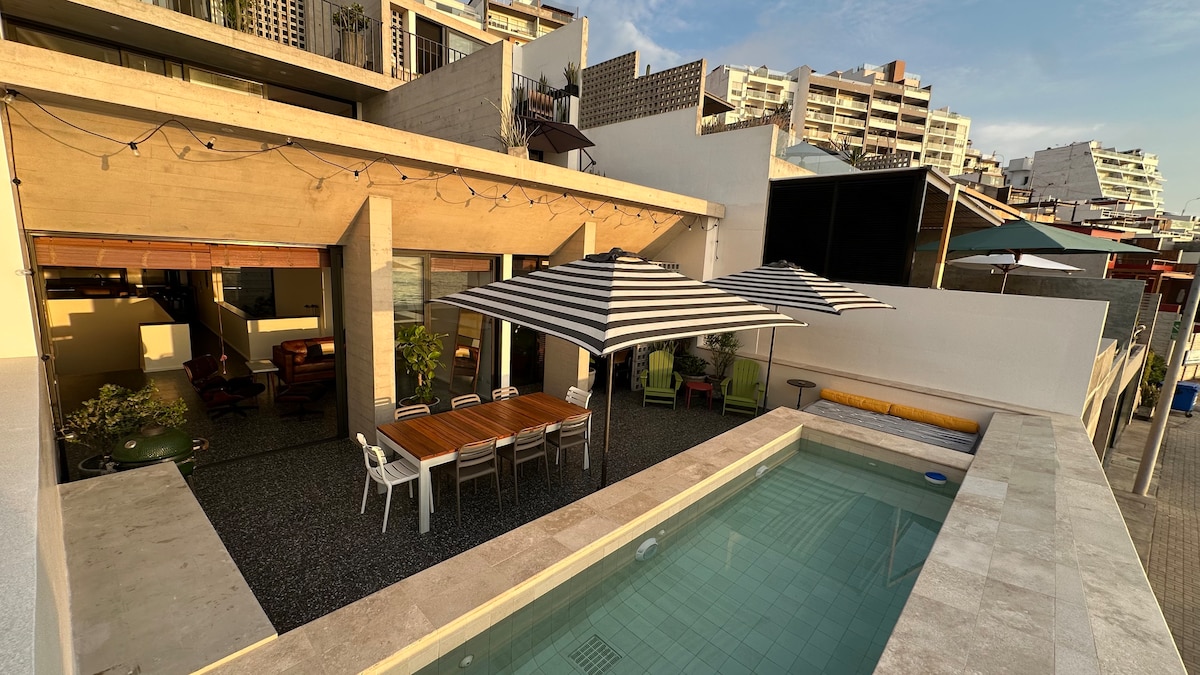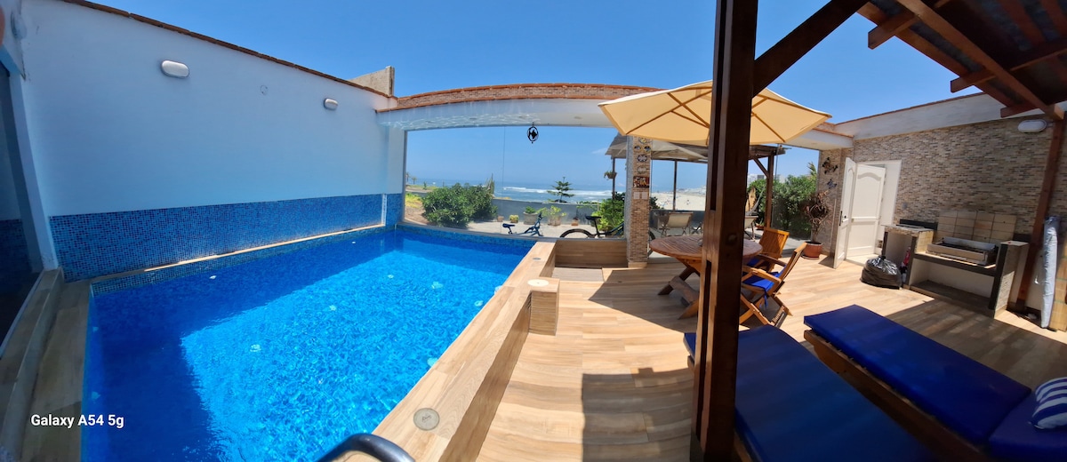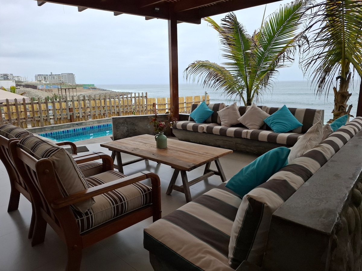 You will feel in a cruise just for you! All areas are for exclusive guest use (no sharing with others) 3 rooms, kitchen, dining room, leaving, terrace, wifi, cable, garden, pool, parking for 2 cars 40 meters to the beach Best spot for surfing Caballeros, Señoritas (direct view) or just chill and relax with the sea view Families and group of friends are welcome. The house have plenty of space for you to have fun, listen your music and enjoy one of the best views in Lima with total privacy