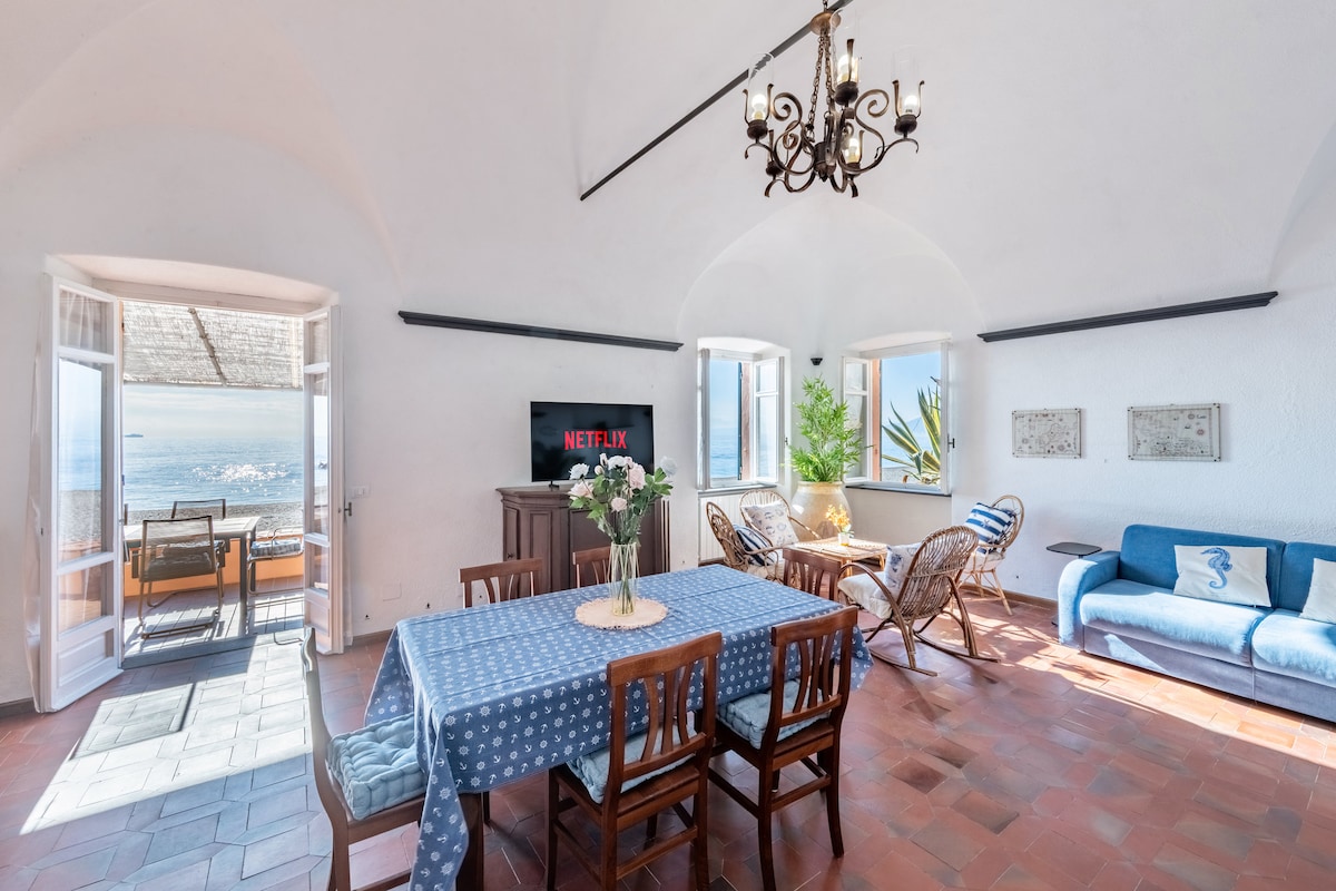 Discover the charm of a historic house located directly on the beach of Varigotti. Perfect for families and groups, it offers spacious and cozy interiors and a covered patio with sea views—ideal for outdoor dining or relaxing moments. Situated in the heart of the pedestrian village, just steps from restaurants, shops, and services. The beautiful beaches, both public and serviced, are right in front of the house. Free parking is 300 meters away, with a private garage available on request.