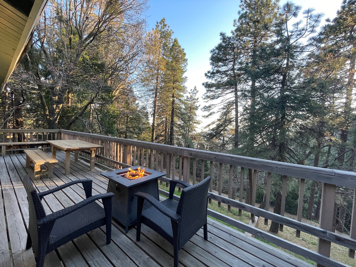 ✨ Location, Location, Location! A special cabin with breathtaking view of The Pinacles⛰️ Tucked away on a peaceful street in Lake Arrowhead. This serene retreat features floor-to-ceiling windows, cozy interiors, and forest scenery that invites you to slow down and recharge. Just minutes from hiking trails, shops, and top-rated restaurants, you’ll enjoy the perfect balance of nature and convenience. Perfect for couples, families, groups, or solo travelers looking for a stylish mountain escape.