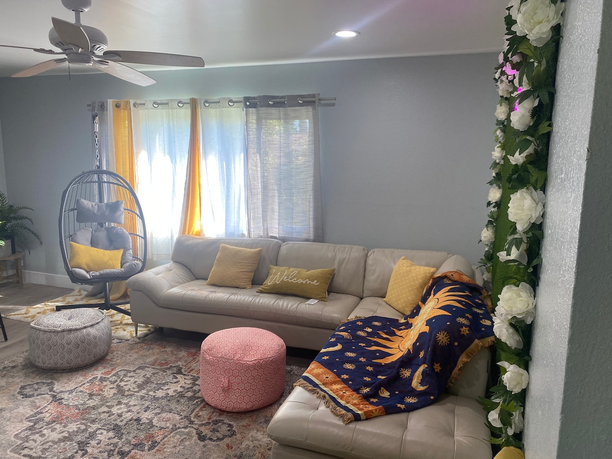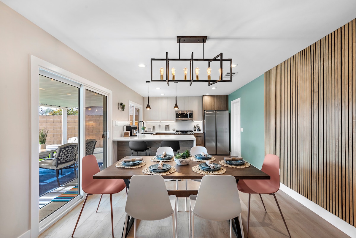 This stylish place to stay is perfect for group trips. The home is situated in a tranquil well-established neighborhood. The huge yard and fruit trees give you privacy while allowing you to connect to nature. The home still has its 1950s charm that makes it feel homey and cozy with modern upgrades all throughout. All rooms have Tempurpedic beds and black out curtains for an exceptional sleeping experience.