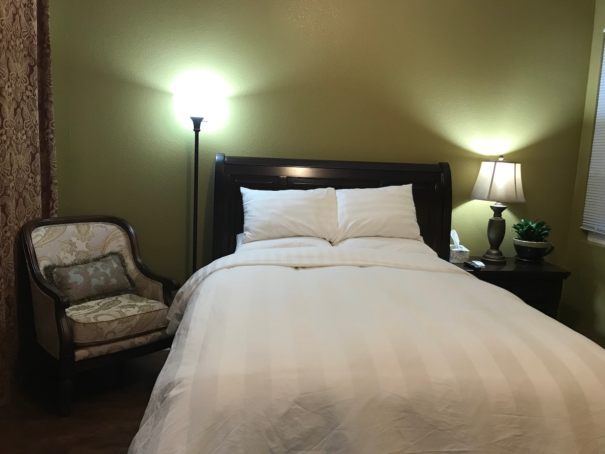 Welcome to the Jazz Room. This is a 600 square foot living space which includes private entrance , 1 Bedroom with 2 Queen beds , Walk-in Closet, Kitchenette, Private bathroom, Living area with sofa sleeper Queen and Private Entrance. Located on the Second floor of an Historical Home in Downtown Riverside. security cameras on exterior , Only 2 City Streets Away from the Convention Center, Mission inn, Fox Theatre, Bars\Restaurants, Fairmount Park, and Riverside Community College and Hospital.