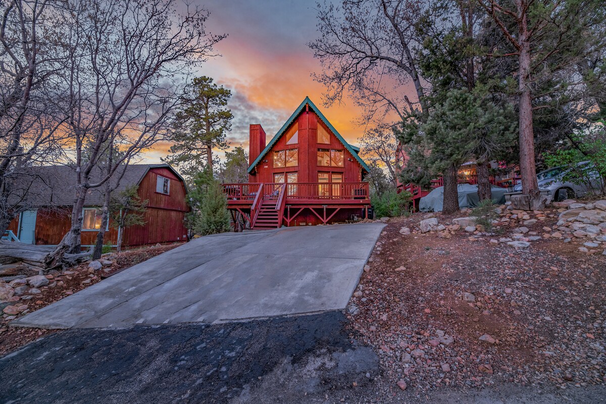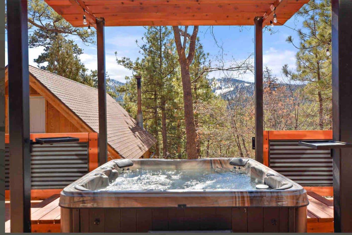 Welcome to our cabin. This is our family get-away place and would love for you to enjoy it. We extend to you every luxury we have for ourselves. With it's modern setting, amenities, EV charger and recent renovation, along with high quality linens and bedding, you will rest and relax. Bear Mountain Resort and Schi School and Big Bear Zoo is only a ¼ mile down. reach Leave your at house, no stress or pay for parking. It's elevated terrace has breathtaking views of the forest and slopes.