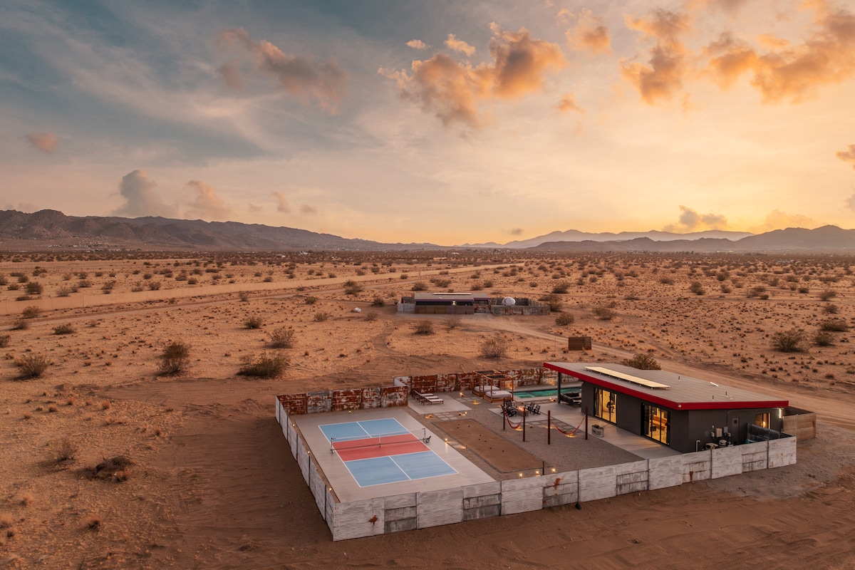 The Drive In is a private desert compound packed full of amenities to ensure your group has the Joshua Tree experience of your dreams! We get it; You're coming to Joshua Tree to connect with nature, so we meticulously crafted a property with outdoor activities that you won't find anywhere else. Highlighted by our Drive In Movie Theater, Outdoor Bathtub, Shipping Container Pool, Pickleball Court, Golf Driving Range & Bocce Court; all with unobstructed views of the national park.