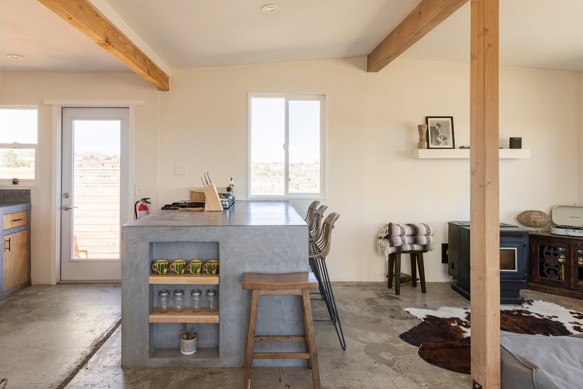 Our cabin is a fully restored homestead cabin located in a very remote area down a private dirt road surrounded by acres of protected unspoiled desert land and very few neighbors. We are a 10 minute drive to local hot spots, & less than 15 minutes to downtown Joshua Tree. The cabin sits on 5 acres with 360 pano views, dark stargazing skies, breathtaking sunrises + sunsets, and endless desert beauty. This cabin was reimagined for those looking to reset and reconnect to their wildish nature.