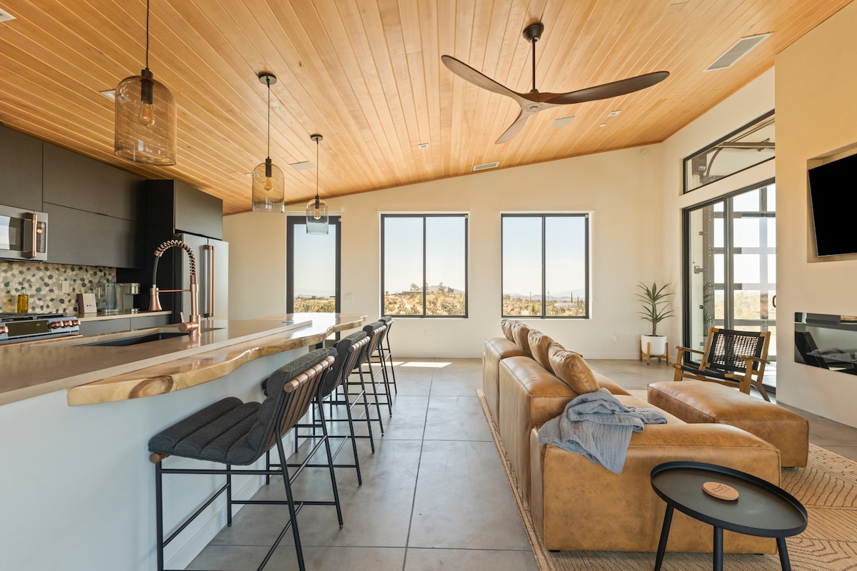 ✅ 5 Acres of Joshua Trees and epic views ✅ Knowledgable Superhost! 24+ years in the area - we help you make the most of your stay! ✅ Unique art and custom finishes by the owners ✅ Hot Tub ✅ Cowboy Pool ✅ Firepit ✅ Deck ✅ Pet friendly ✅ Hammocks ✅ 5 Zone Heating/AC ✅ Spacious open concept living ✅ Fully furnished kitchen ✅ Private Office ✅ Meditation room ✅ Premium mattresses and sheets ✅ Fast Starlink Wifi ✅ Sonos Speaker ✅ Giant Foosball Table and games ✅ 65" LG 4K Smart TV w/ Airplay, Max, etc