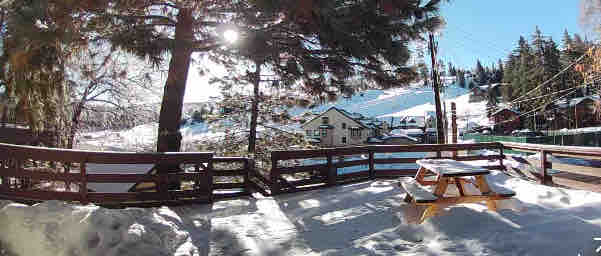 LOCATION! LOCATION! LOCATION! WITH A VIEW! Our Cozy Cabin (600sq ft) is located less than a mile away from the village with all the restaurants and shops. Also we are less then a mile away from Snow Summit ski resort. You are close to everything Big Bear has to offer. Our deck is very large with extra seating and a table. It's a wonderful place to hang out and enjoy an incredible view of the mountains.