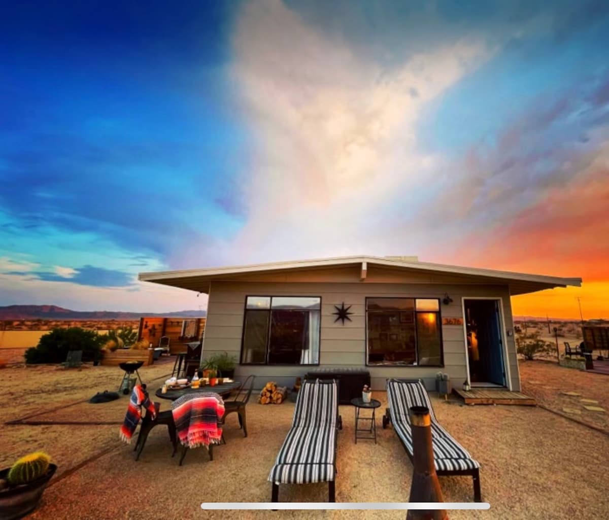 An exceptionally exquisite experience in the heart of Joshua Tree! We've designed the space specifically for vacationers visiting the high desert and have no rock left unturned. This 2 bedroom/1 bath villa is located just minutes to all the attractions in the High Desert. Joshua Tree Park, Pappy & Harriets, Shopping & More. Bathe in our specially designed Side by Side outdoor bathtubs and shower with a glorious wrap around patio. Suspended swings, jacuzzi and stars like you've never seen.
