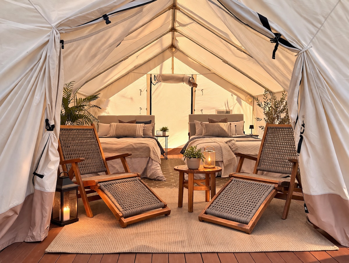 温泉附近的带家具豪华露营帐篷