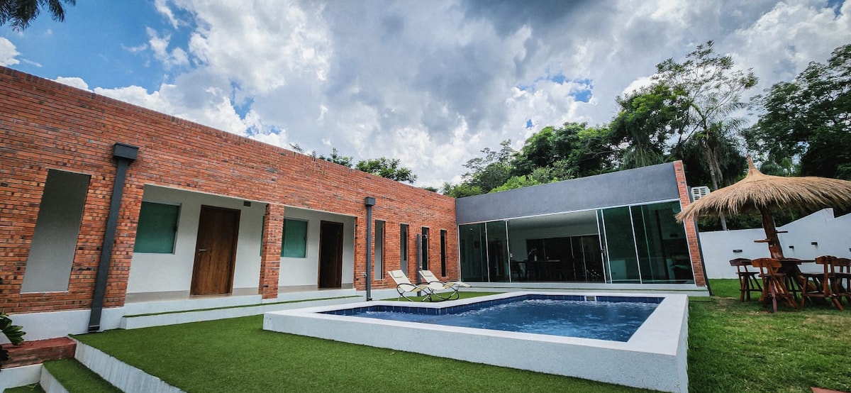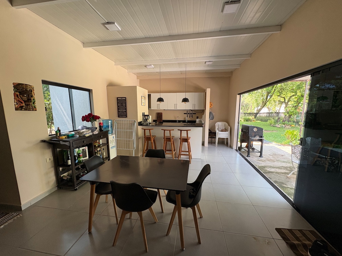Relájate con toda la familia en este tranquilo lugar de 4 hectareas para quedarse y estar en contacto con la naturaleza. La casa cuenta con Piscina , parrilla , amplio patio con jardín. Cubiertos , platos ,anafe , licuadora , horno eléctrico, mixtera y cafetera dolce gusto. Sábanas , y almohadas para cada cama. Toallas para todos los huéspedes. A 3 min del mini mercado Biggie y a 5min del supermercado Superseis. Sobre la ruta Sanber Altos. A metros de Restaurante Tatano.