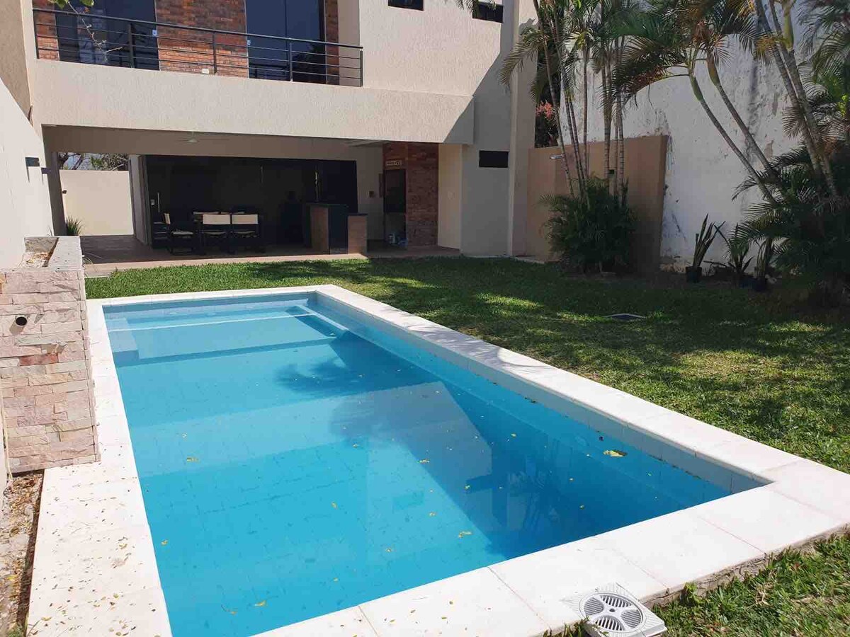 Moderna y exclusiva casa en San Bernardino zona anfiteatro. Diseñada para generar una experiencia cálida, cómoda y lujosa a través de sus espacios integrados y sus comodidades (parrilla amplia, TV en sala y quincho climatizado, sauna, piscina, wifi, estacionamiento para cuatro vehículos y pozo artesiano). Cuenta con todo lo necesario para brindar la mayor comodidad y versalitidad a los huespedes.