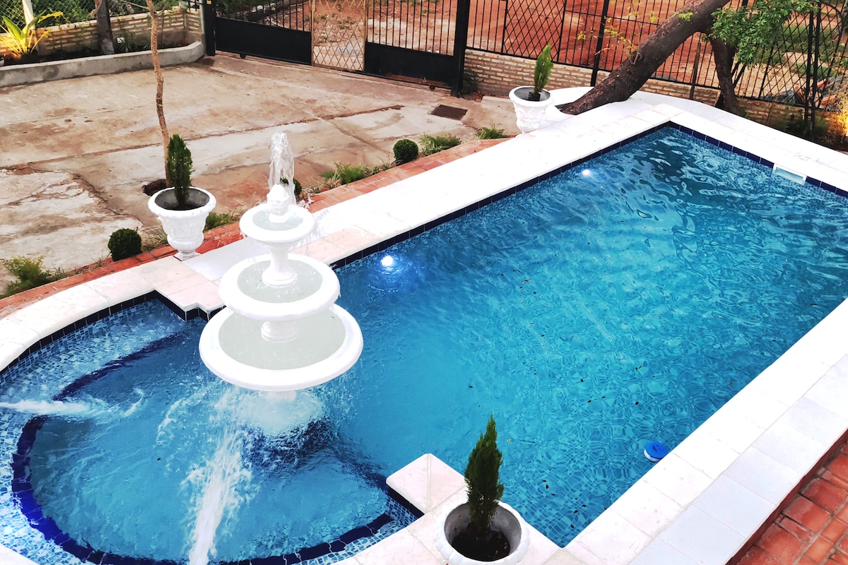 Acogedor alojamiento Oga Ciudad Jardín a solo 3 km del aeropuerto 5 min en auto. Ubicado en una zona estratégica: a 7 min de Plaza Madero y del centro de Luque, 8 min de la Conmebol y 20 min del centro histórico de Asunción. Cerca de supermercados, restaurantes y farmacias. Ideal para descansar y disfrutar de tu estadía con comodidad y fácil acceso a los principales puntos de interés.
