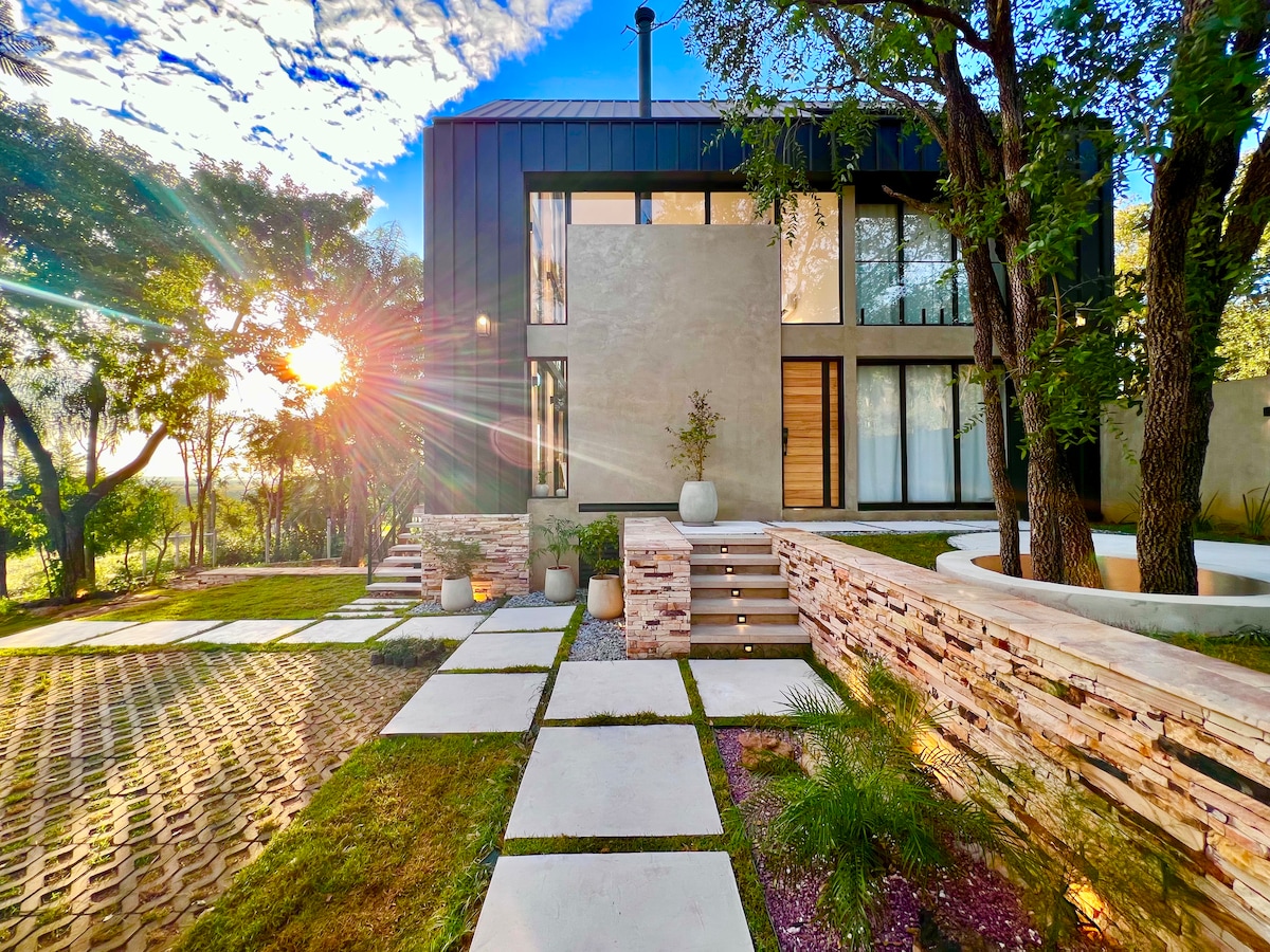 Moderna y exclusiva casa en San Bernardino zona anfiteatro. Diseñada para generar una experiencia cálida, cómoda y lujosa a través de sus espacios integrados y sus comodidades (parrilla amplia, TV en sala y quincho climatizado, sauna, piscina, wifi, estacionamiento para cuatro vehículos y pozo artesiano). Cuenta con todo lo necesario para brindar la mayor comodidad y versalitidad a los huespedes.