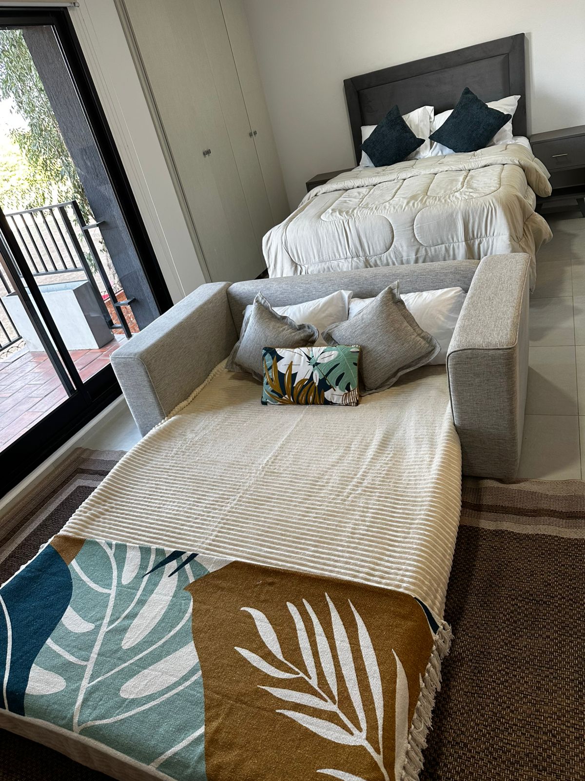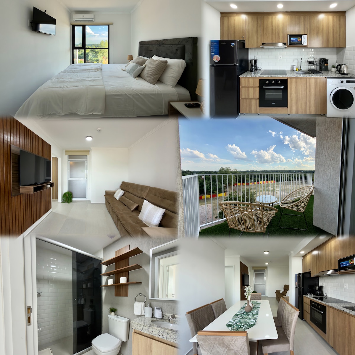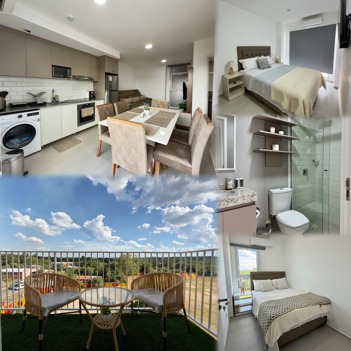 Disfruta de un monoambiente moderno y totalmente equipado en Luque. Cuenta con cama doble, sofá cama, cocina completa, baño privado y balcón con vista verde. El edificio ofrece piscina, gimnasio y área de juegos infantiles. Ideal para parejas, viajeros de trabajo o familias pequeñas que buscan comodidad y practicidad, con llegada autónoma y ubicación cercana al aeropuerto y fácil acceso a Asunción.