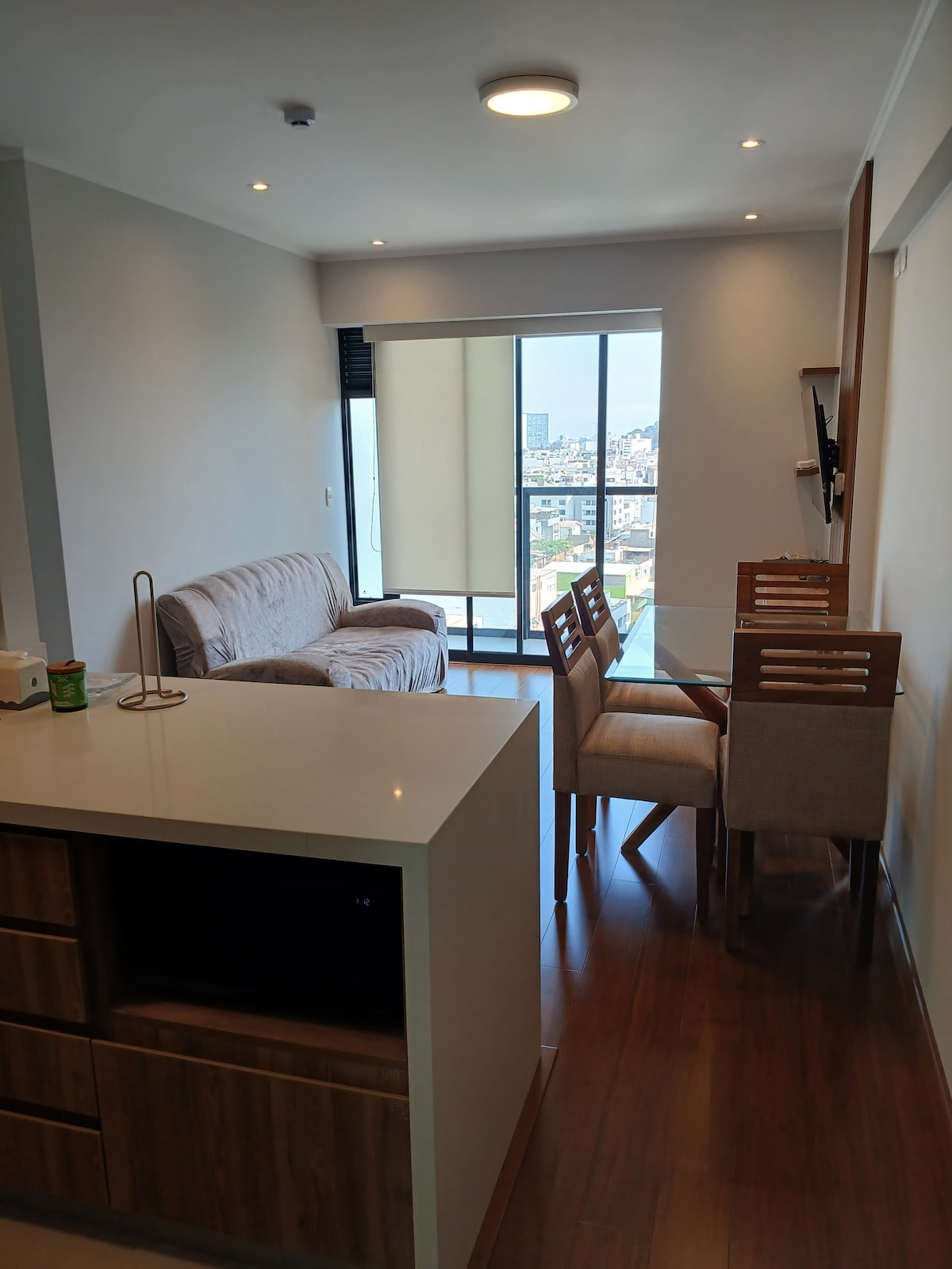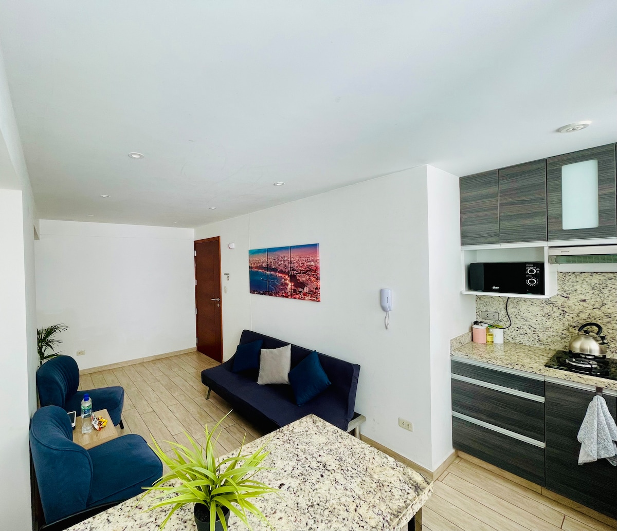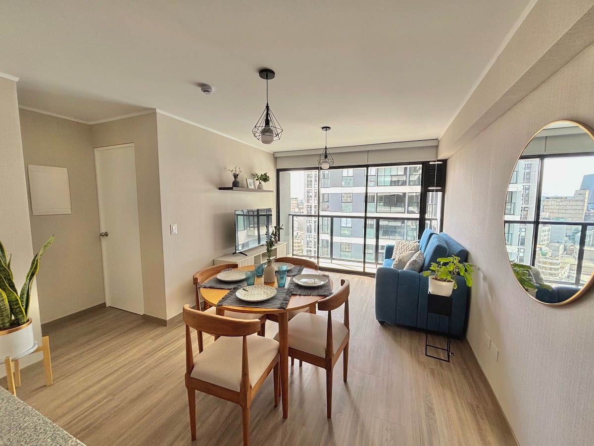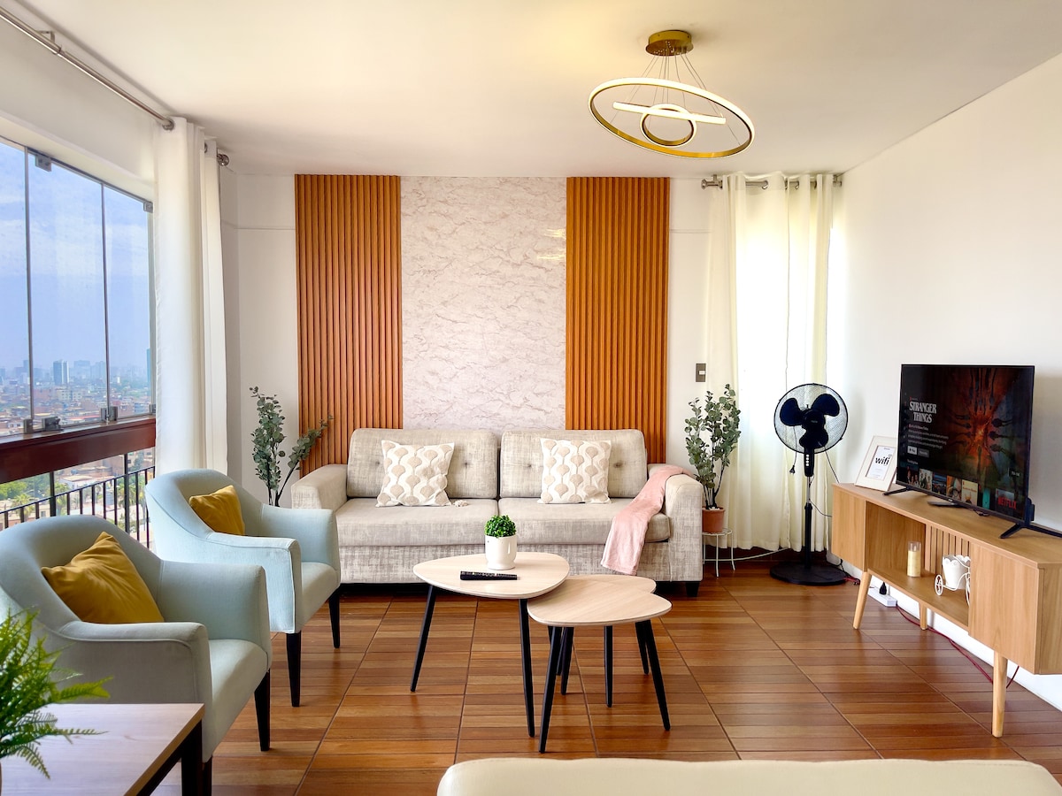 Live Lima from the 20th floor with stunning views! 🛏️ KING bed 📺 65" TV 🛋️ Comfy sofa 🍳 Fully equipped kitchen 🏊 Pool, 🔥 BBQ, and 🍸 Lounge Bar (subject to availability) 🚗 Parking for USD 8/night (subject to availability) 🧳 Store luggage before check-in or after check-out 📍 Prime location between Miraflores, San Isidro, and Surquillo 🌟 With a 4.96 rating and Superhost status, I offer you a comfortable and safe stay. 📅 Book now and enjoy Lima from the top, with style and comfort!