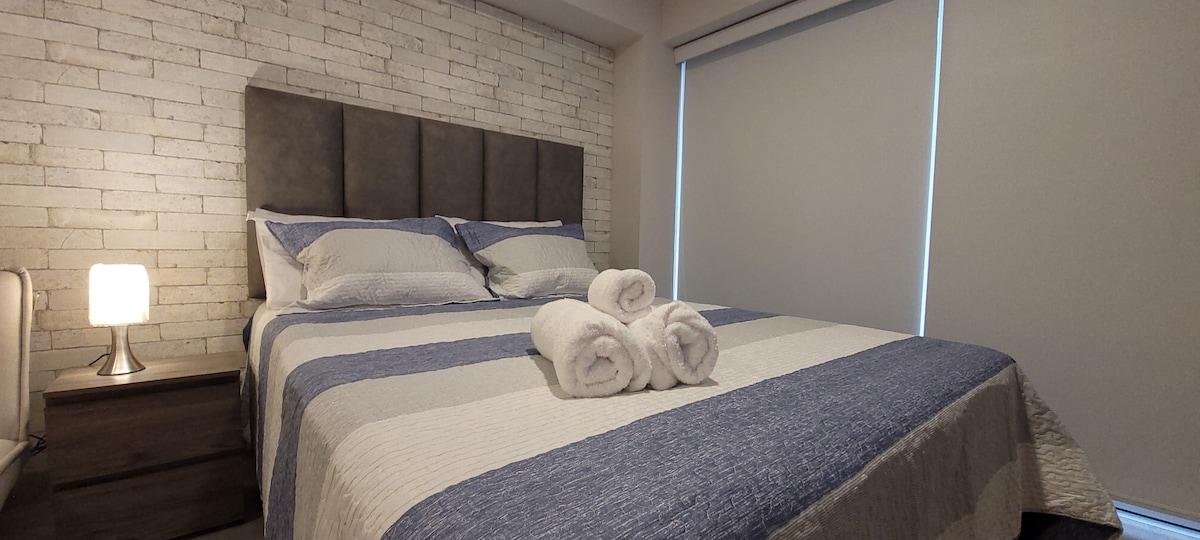 Ideal for long stays. The best stay for executives or couples. Located in the best business area of Lima, with everything at your grasp!. Within walking distance of banks, restaurants, cafes, shopping, entertainment centers, bus stops and more. Early check-in subject to availability. Enjoy a cozy, very illuminated apartment, with all the comforts to remote work and rest. In a modern building with 24-hour reception, gym, swimming pool in one of the most beautiful and safest areas of Lima - Perú.