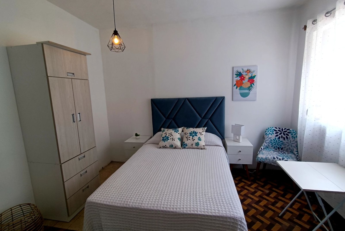 A cozy studio with a kitchenette, bedroom with a closet, dining area, desk (1.10 m wide), and private bathroom. This space is completely private during your stay and is located on the fourth floor, where you’ll enjoy beautiful sunset views. Ideal for those spending their time outside sightseeing or working and needing a comfortable place to return to. Excellent location, close to supermarkets, banks, and shops, yet away from the hustle and bustle. The area is quiet and 100% residential.