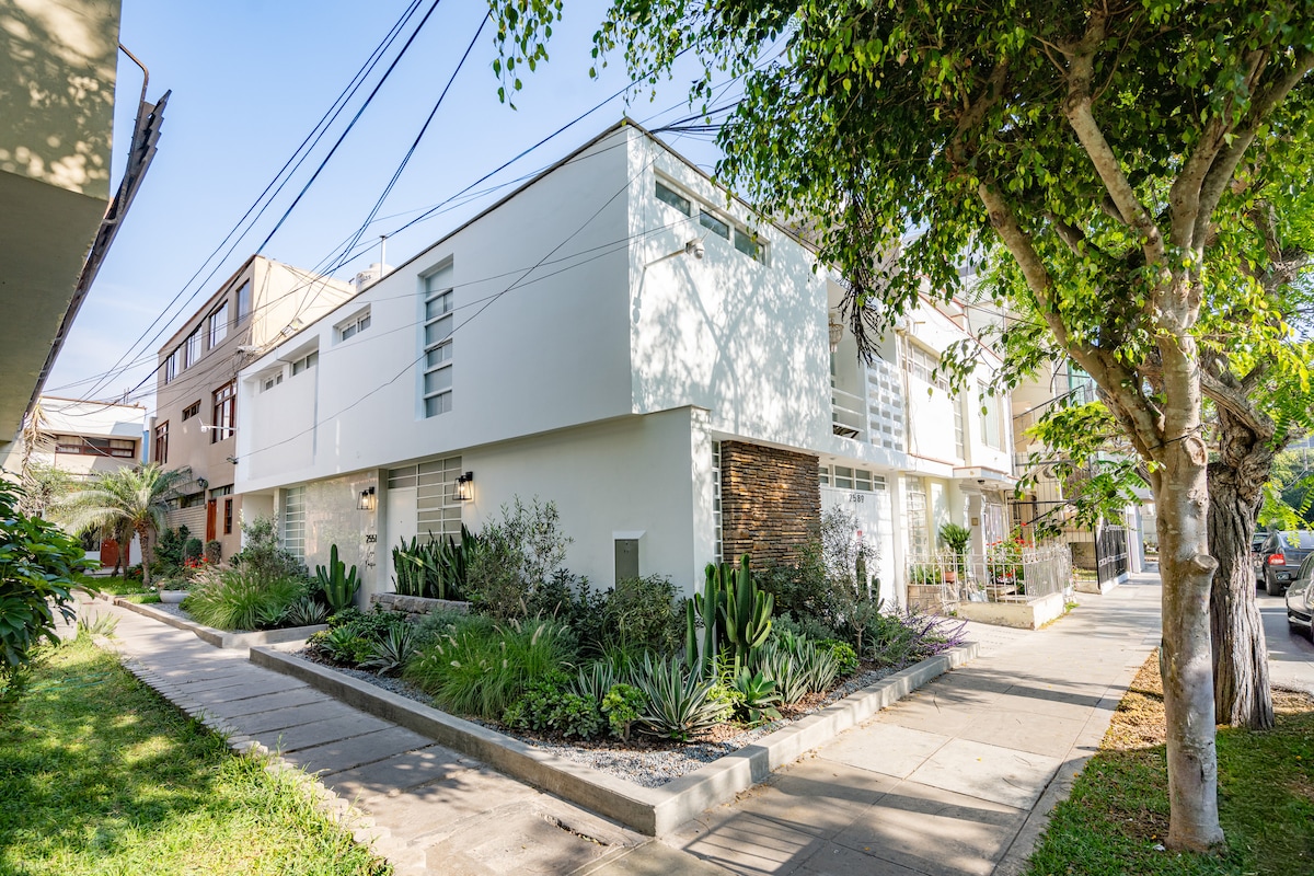 This Independent private entrance Studio with full kitchenette & private bathroom is on the first floor of a beautiful Art Deco house in Miraflores, the safest tourist town of Peru. The base rate includes capacity for up to 2 guests in a full bed-The cleaning fee is included too so when you Check Out you do not need to worry about anything-Most attractions are within walking distance If you want to experience how is to live in Lima, you are in the right place-IT'S A 5 STARS PRIME LOCATION.